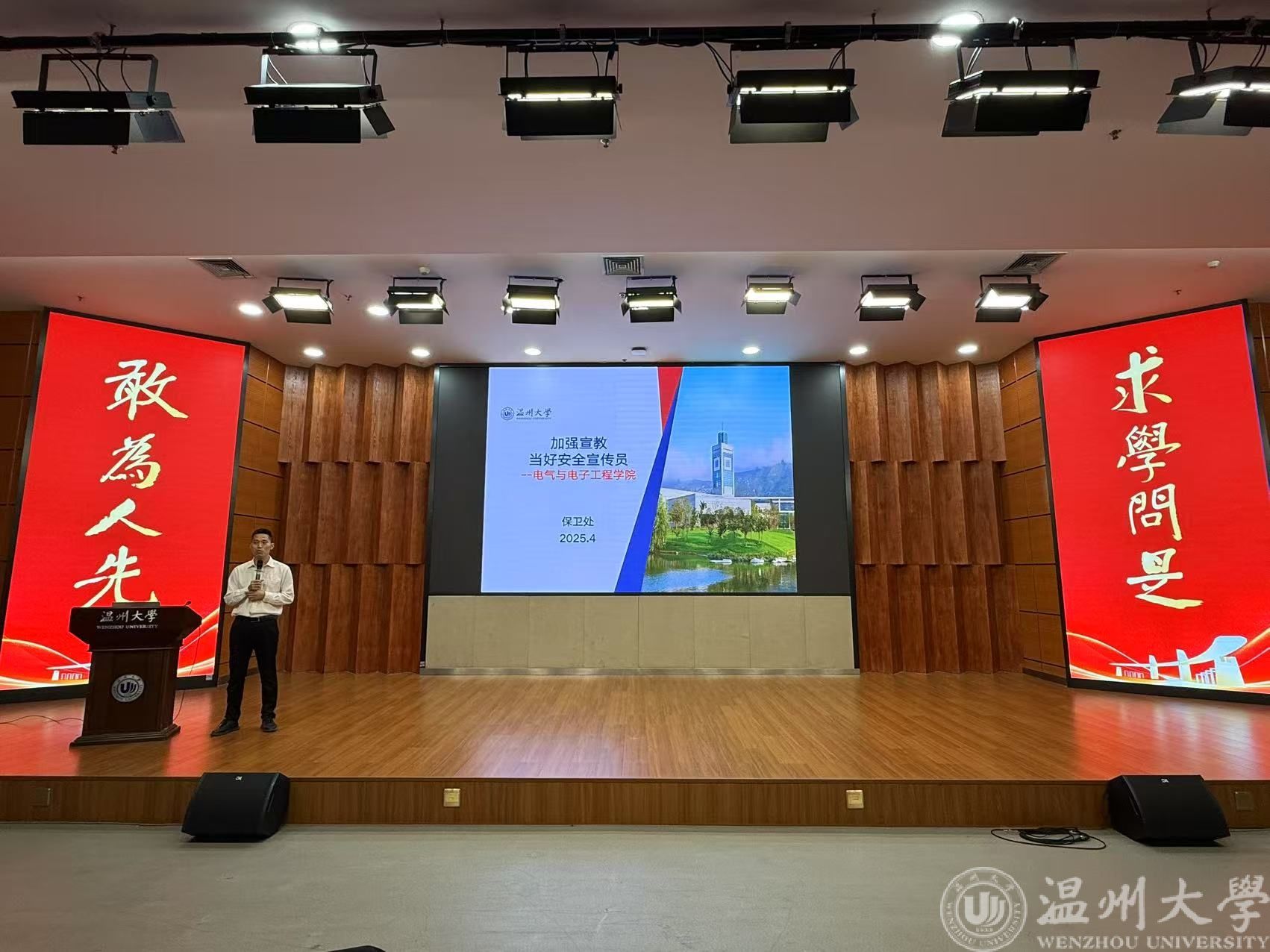 4月17日晚6:30,为强化学生宿舍安全管理,提升学生安全意识,我院在岩松堂召开2025年第一次全体寝室长会议暨安全委员会议,学院党委副书记翁浩、学工办辅导员余明新、潘文参加会议,保卫处副处长钱合激受邀开展安全教育讲座。本次活动由学院研究生会和团委学生会共同承办。