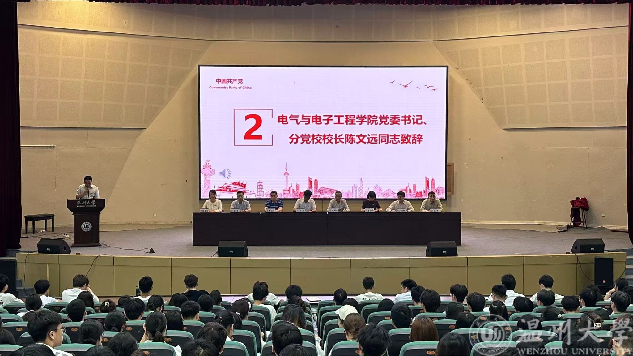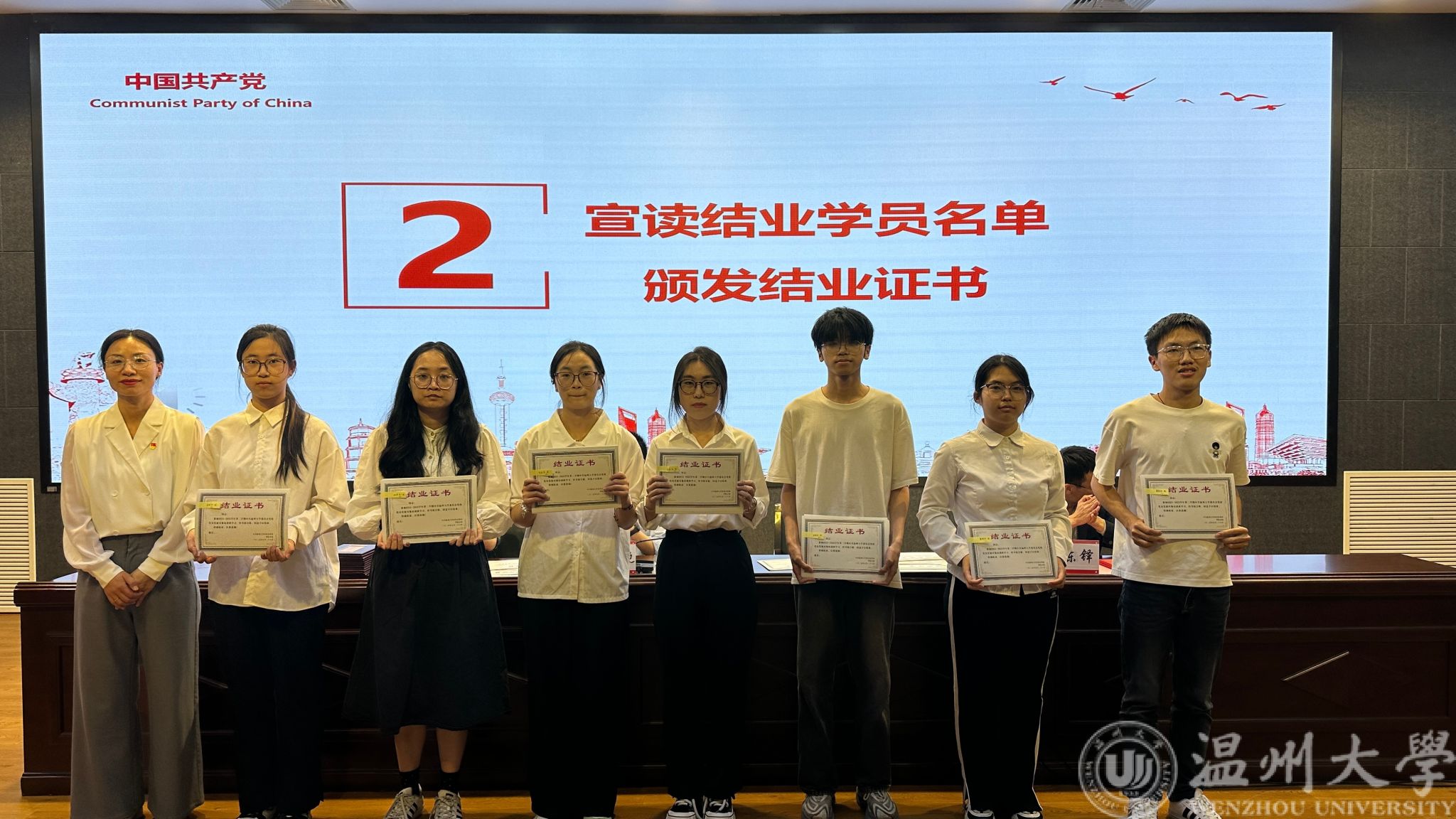 2025 年 5 月 28 日下午 1:30,中共温州大学委员会党校(南校联合)党员发展对象培训班结业典礼在温州大学南校区岩松堂步青厅隆重举行。数理学院党委副书记潘莉莉,机电工程学院党委副书记方建晓、建筑工程学院党委副书记陈铎、美术与设计学院党委副书记叶如芳出席典礼,典礼由yl23455永利官网党委副书记翁浩主持。