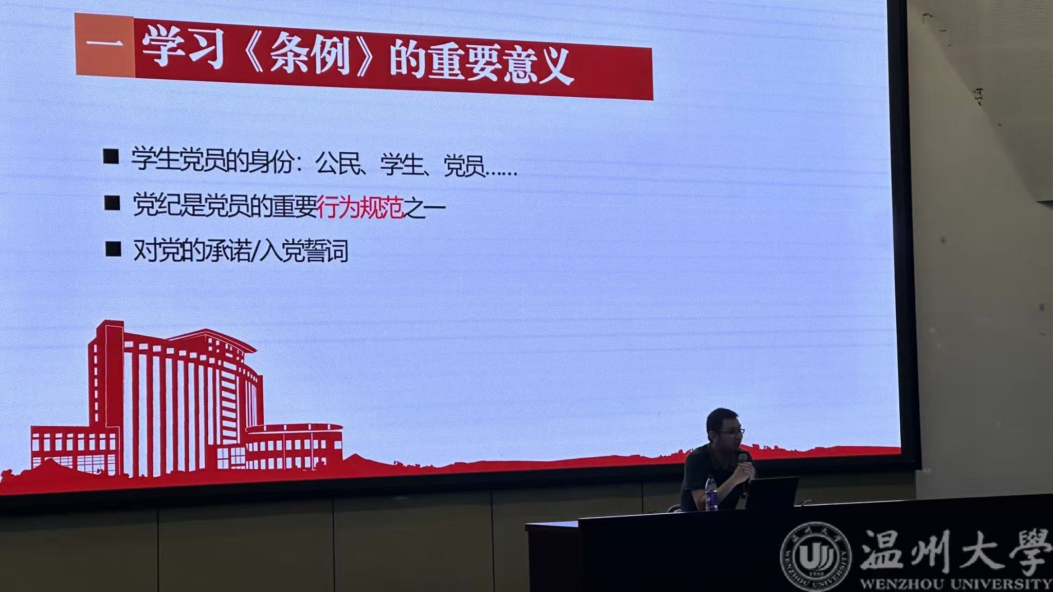 本次培训班自开班以来,围绕新时代党的创新理论、党的作风建设、马克思主义宗教观、两会精神、中央八项规定等核心要点,通过专题学习、小组讨论、实践教学、上机考试等多元方式展开教学,助力学员深入理解党的性质、宗旨、纪律及路线方针政策,端正入党动机,坚定理想信念。培训班先后开设了多场专题讲座。5 月 21 日,柯宇航带来《中国共产党纪律处分条例》专题讲座,深入解读党的纪律要求,强化学员的纪律意识;5月22日,王柏民以《马克思主义宗教观》为主题,引导学员正确认识宗教问题,坚定马克思主义信仰;5 月 24 日,关震和鲁文分别就全国 “两会” 精神和《贯彻落实中央八项规定精神》进行专题讲解,帮助学员了解国家发展大势和党的作风建设要求。实践教学环节中,学员们分批次前往马理论教育基地开展实践活动,将理论学习与实际相结合,增强对党的理论的感性认识。小组讨论围绕《温州大学党员先锋引领 “十要”》展开,学员们结合自身实际,深入探讨学生党员如何发挥先锋模范作用,进一步明确了自身的责任与使命。培训班为学员提供了丰富的自学材料,包括《中国共产党章程》《中国共产党纪律处分条例》《十八届中央政治局关于改进工作作风、密切联系群众的八项规定》等,要求学员通过自主学习掌握党的基本知识。同时,培训班还组织了结业考试,检验学员的学习成效,确保培训质量。