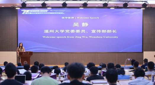 温州大学党委委员、宣传部部长、教师工作部部长吴静致辞。她介绍了温州大学的基本情况以及近年来所取得的办学成就。她表示,人工智能作为引领新一轮科技革命和产业变革的战略性技术,深刻改变人类生产生活方式。温州大学高度重视人工智能相关学科建设,在人工智能芯片和电气智能化设计、医学影像智能分析、物联网安全技术等领域服务相关产业转型升级,取得显著成效。本次会议聚焦人工智能这一前沿领域,深入探讨其技术突破与多元应用,必将有力提升我校新一代人工智能科技创新能力。