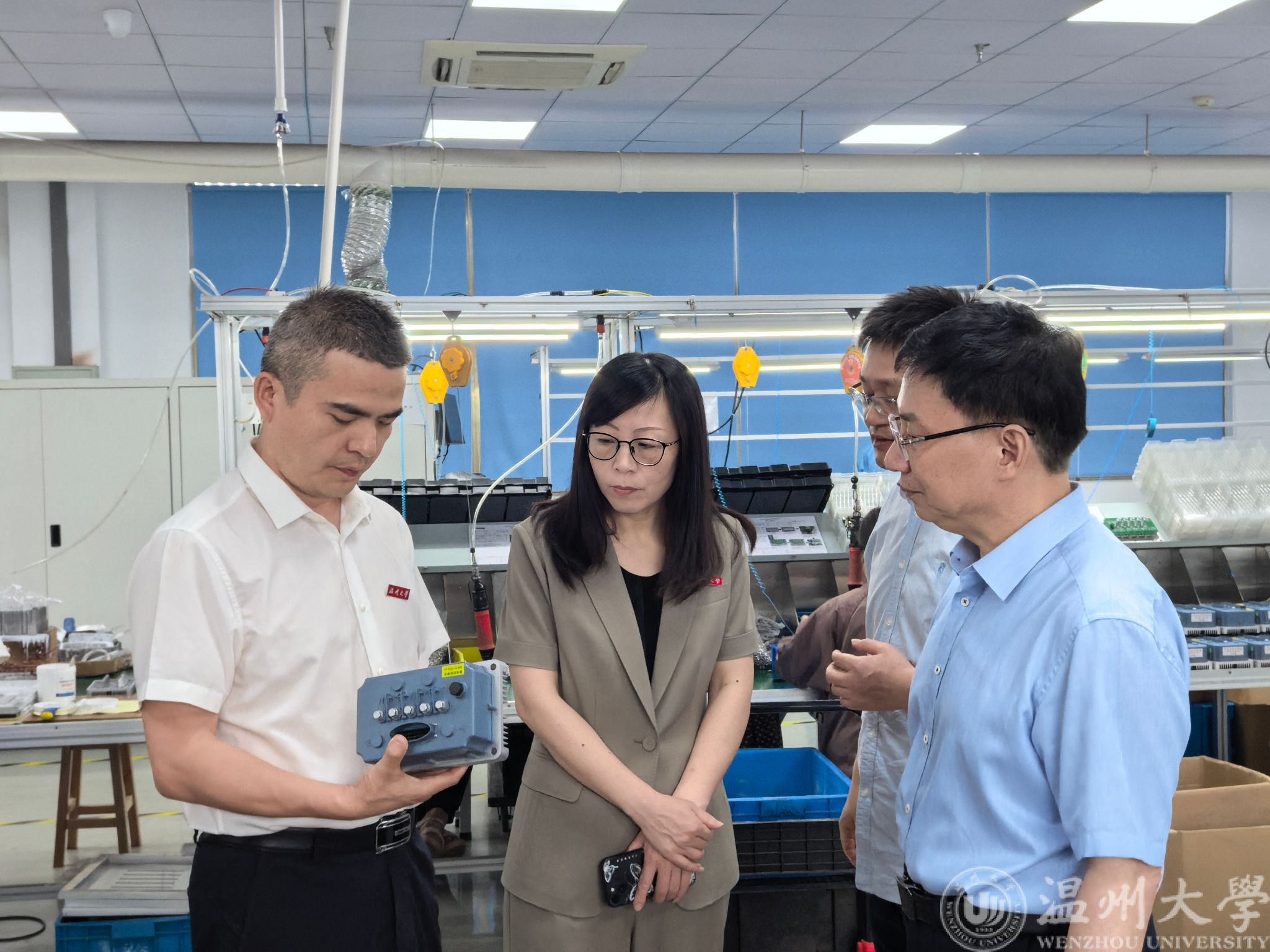 在浙江聚创智能科技股份有限公司董事长、电气电子学院校友吴桂初等企业方代表的陪同下,吴静一行参观了企业,走访了实践场地。
