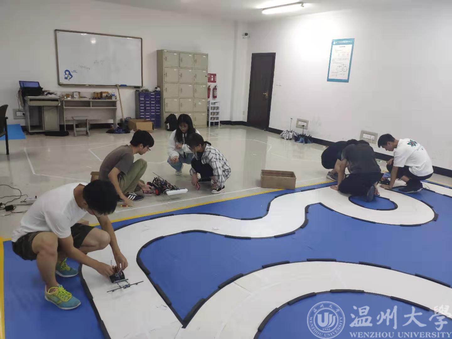 2019年7月20日,学院副院长陈孝敬在智能机器人俱乐部指导师王峰老师的陪同下,来到智能机器人实验室,看望了正在奋战的智能机器人俱乐部的全体智能车参赛队伍。第十四届“恩智浦”杯智能汽车竞赛,将在7.25-28在杭州举行,本次比赛本校共有7支队伍,分别参加室外越野电磁组,双车会车组,三轮组,无线节能组,四轮组等5个组别。无线节能组把电磁循迹,无线充电和节能多个元素加以结合,比得不仅是竞速,还有节能。电磁越野车,利用电与磁之间的关系驱动赛车,性能强悍;三轮车,前有一个极小的车轮但主要通过后面两个大车轮维持车身平衡;双车会车,两辆车双双进入赛道按照相反方向行驶,通过计算两车跑一圈的时间+两者的时间差作为比赛成绩。同学们在赛道的十字回环、S型路段、大S弯道、小S弯道,挑灯夜战,反复测试,检查错误。