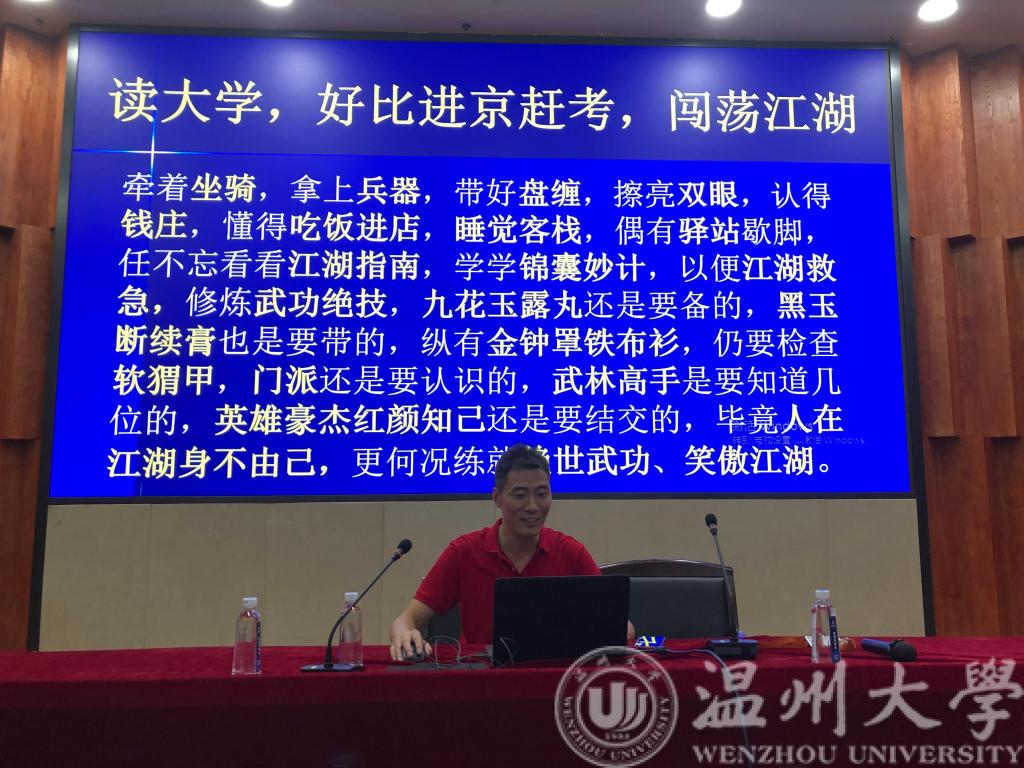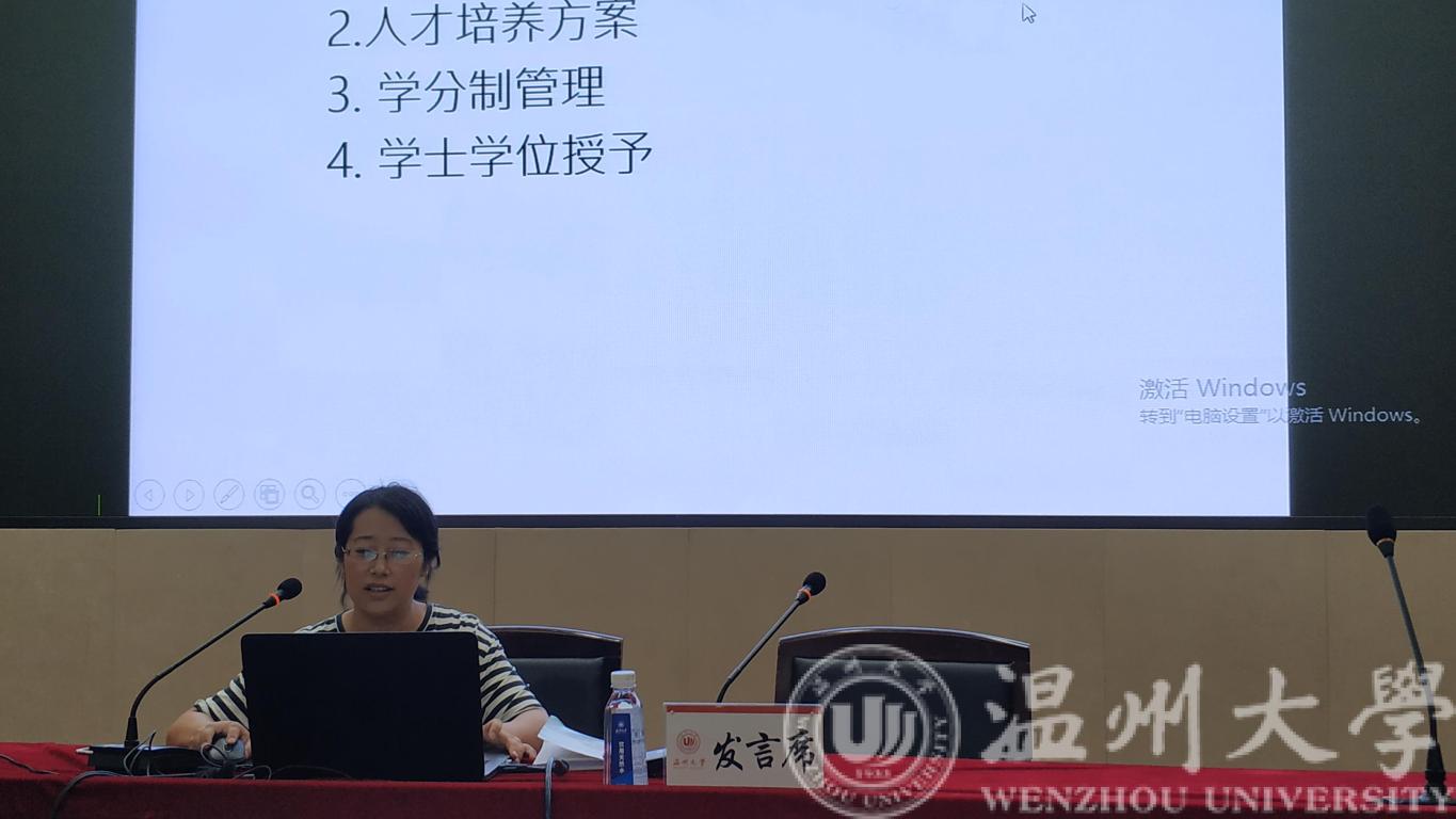 接着,孙双老师还为全体新生带来了《学籍制度》讲座。孙老师着重为新生讲解了温州大学学分制管理规定,详细说明学校对学分及绩点的各项要求,并对学生重修、免修等学业问题做了重点介绍。