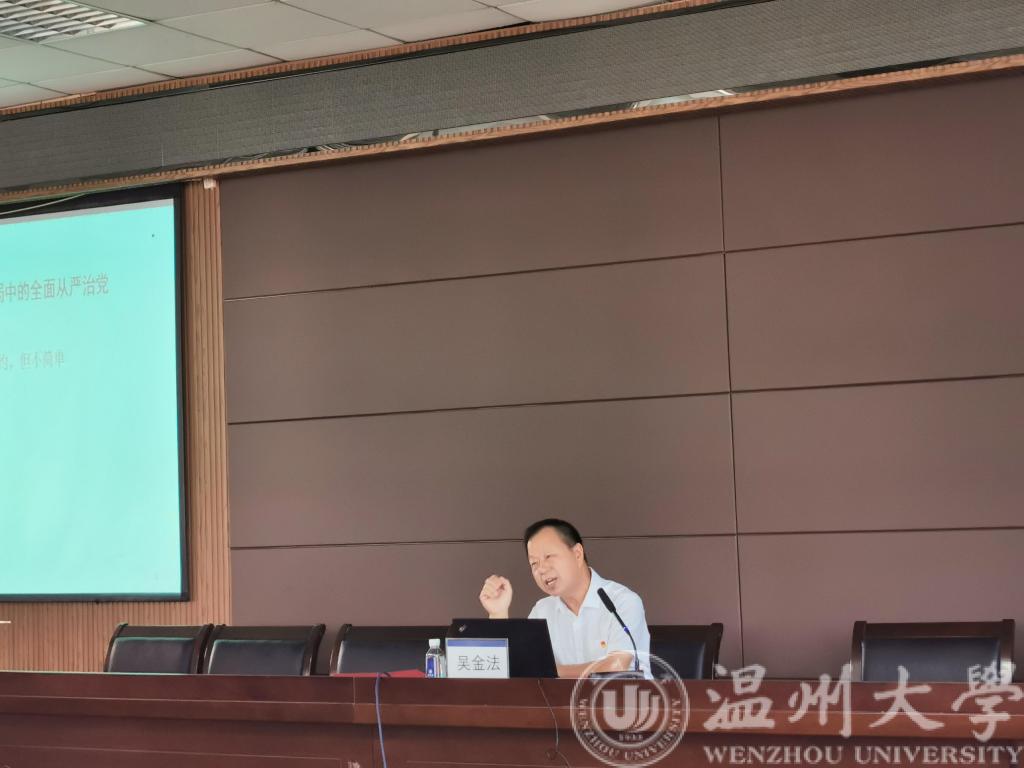10月18日上午10点,校纪委吴金法书记在南校区11C401室进行了一场题为“全面从严治党永远在路上”的主题党课,yl23455永利官网师生党员参加了学习。
