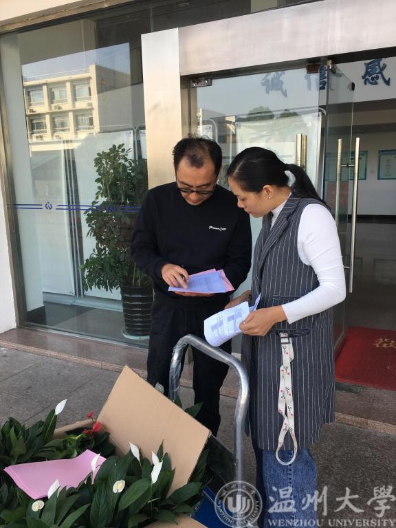 10月21日上午,yl23455永利官网教工行政党支部书记曾蓓蕾、工会主席宋元平,带领支部成员孙双老师、潘龙飞老师,以及研究生党员扬起超带着新鲜的绿植和预防“登革热”的宣传单,奔赴学院各个教师办公室和实验室,为老师们的办公室献上一份绿色,并化身预防“登革热”的宣传员,为各位老师讲解“登革热”预防的相关知识。