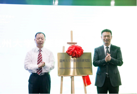 温州大学党委副书记吴金法与瓯海区副区长林照光为温州大学智能锁具研究院揭牌
