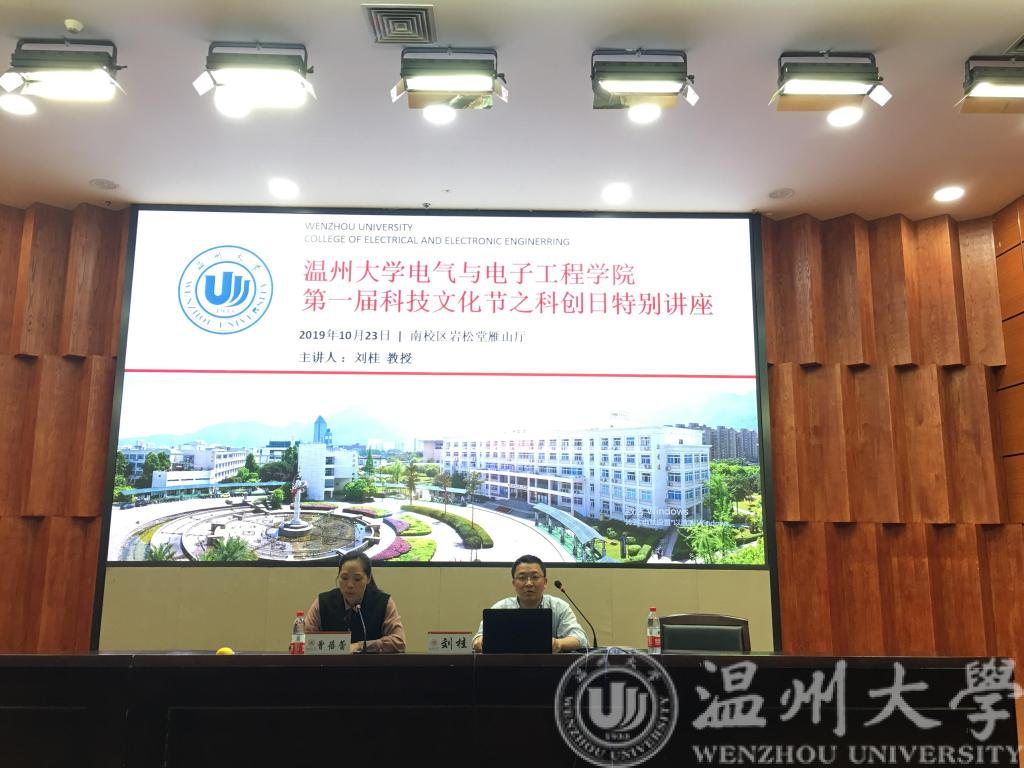 2019年10月23日《不忘初心、科技报国》为主题的科技文化节讲座于岩松堂雁山厅顺利举办,本次科创特别讲座请到了温州大学科技处副处长、温州大学电气电子工程学院刘桂教授为学院大一、大二学生开讲,由院党委副书记曾蓓蕾主持。