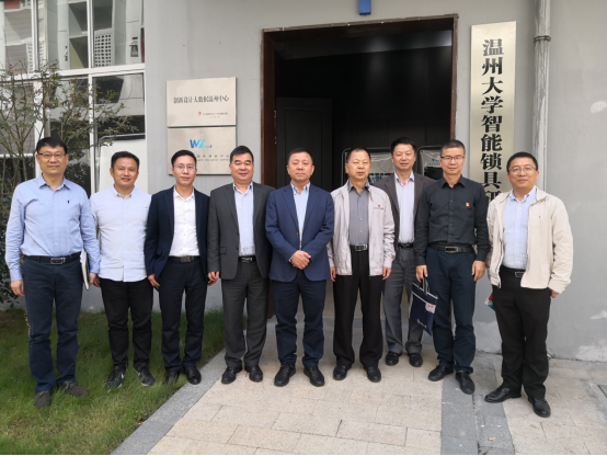10月30日上午,温州大学党委书记谢树华、副书记吴金法、副校长徐和昆一行在学校有关部门负责人、yl23455永利官网负责人的陪同下,来到位于温州市国家大学科技园7号的温州大学智能锁具研究院临时办公地点走访视察。