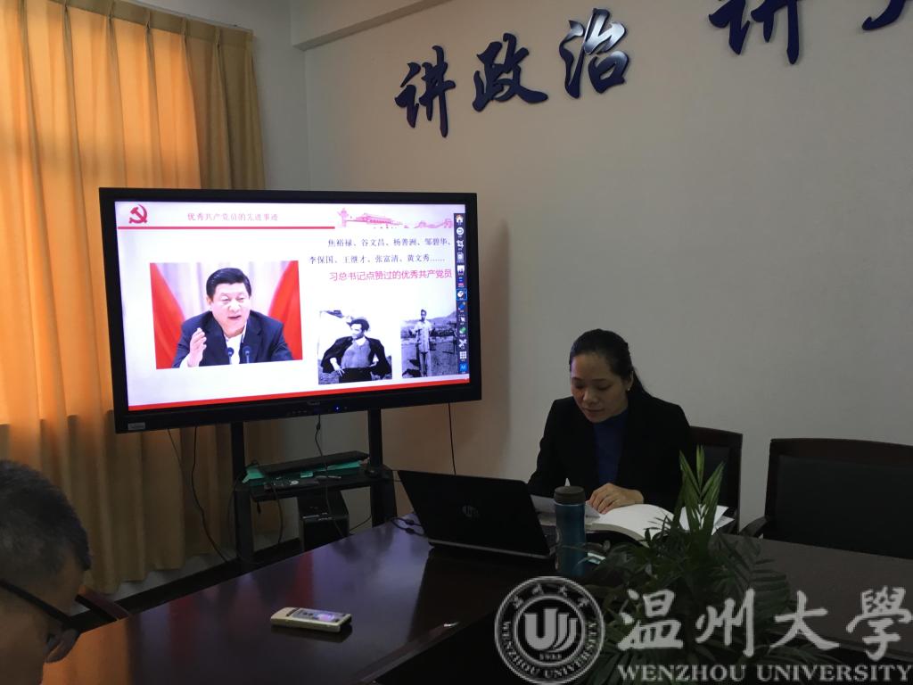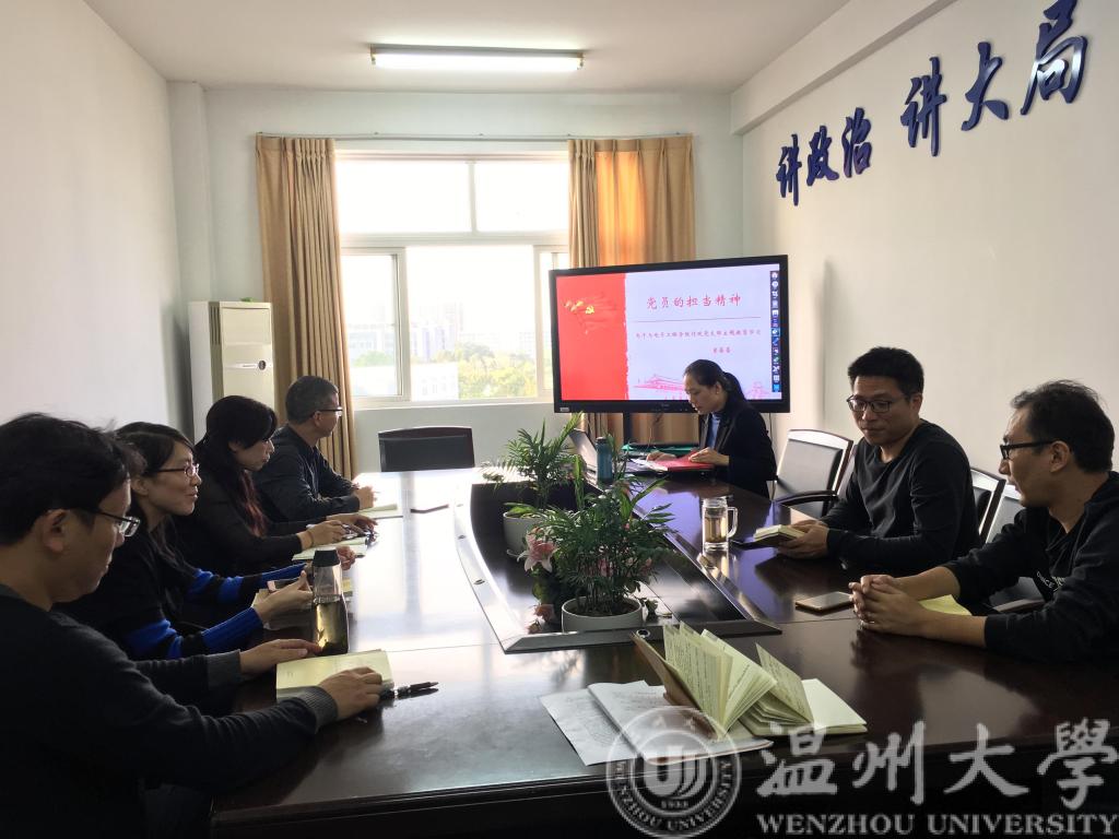 10月30日下午,yl23455永利官网行政教工党支部“不忘初心、牢记使命”集中学习会在学院1A504会议室召开,支部书记曾蓓蕾为支部党员作题为《党员的担当精神》主题教育专题党课。