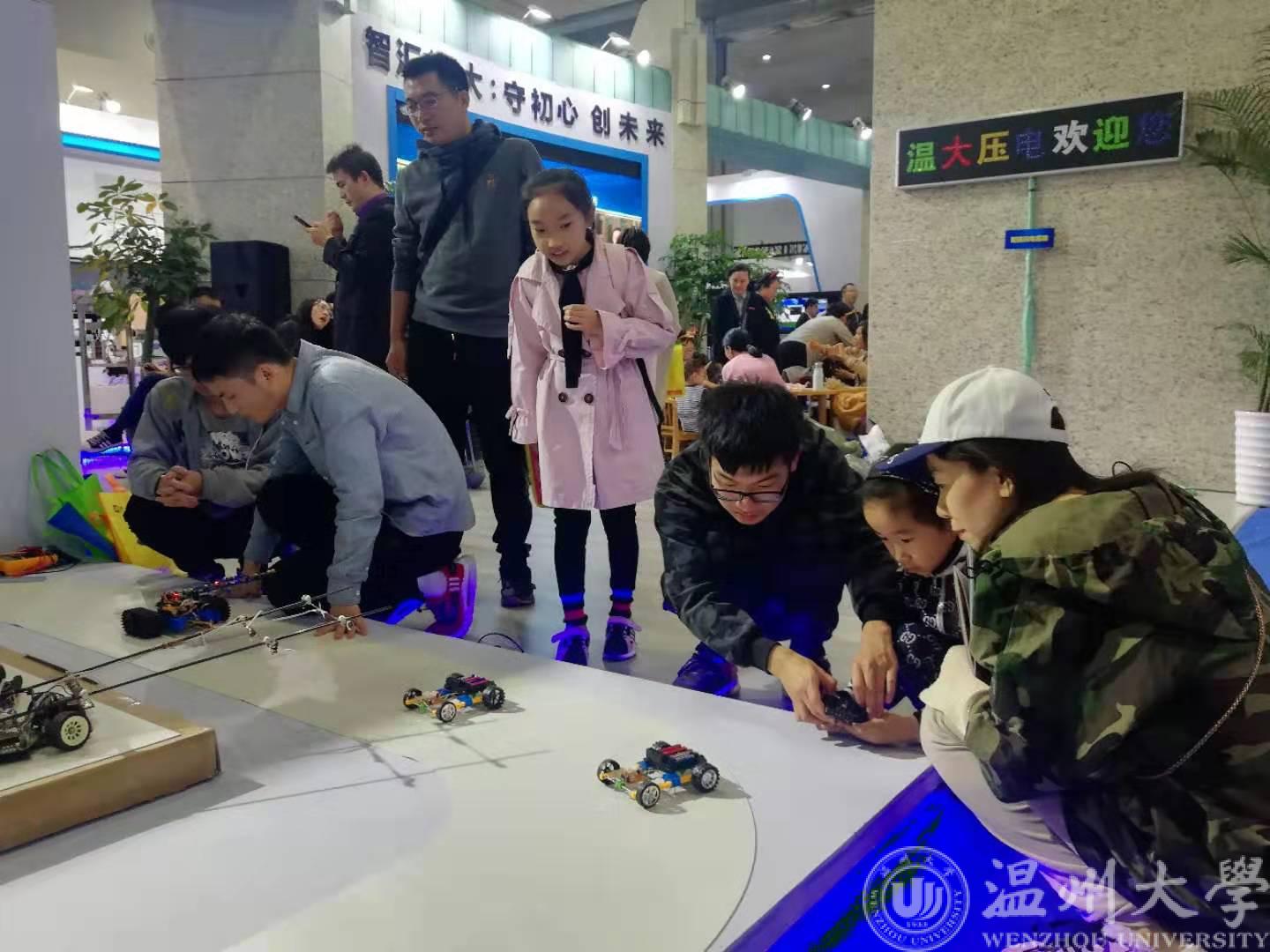 11月15日,由浙江省人力资源和社会保障厅、温州市人民政府主办的2019浙江•温州创业创新博览会在温州国际会展中心隆重开幕,本届创博会以“双创热浪推动高质量发展”为主题。温州大学作为院校创意展区的参展单位之一,以“智汇温大:守初心 创未来”为主题,规划了“智能科技”“文化创造”两大模块。我院的两项作品“低压电器数字制造孪生车间及系统”、“智能循迹小车”项目参加了本次展会,并且受到了省、市和温州大学各级领导的关注和肯定。