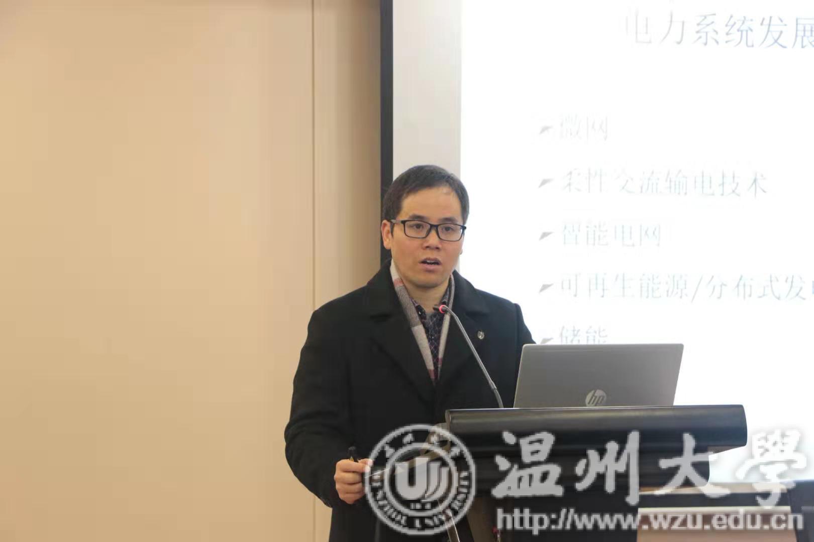 首先,张正江老师为大家讲解了电气工程及其自动化专业基本概况及特色。张老师从温州大学电气专业的发展历程出发,介绍了本专业的学科背景、产业背景、培养目标及科研平台对地方产业的支撑。同时,电气专业师生取得的科创成果、电气专业取得的建设成果等也是介绍的一大亮点。