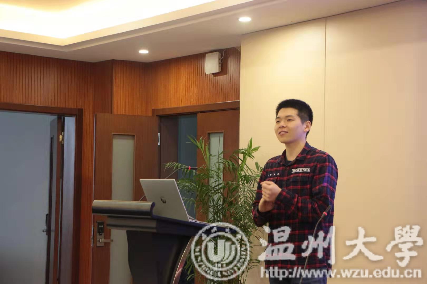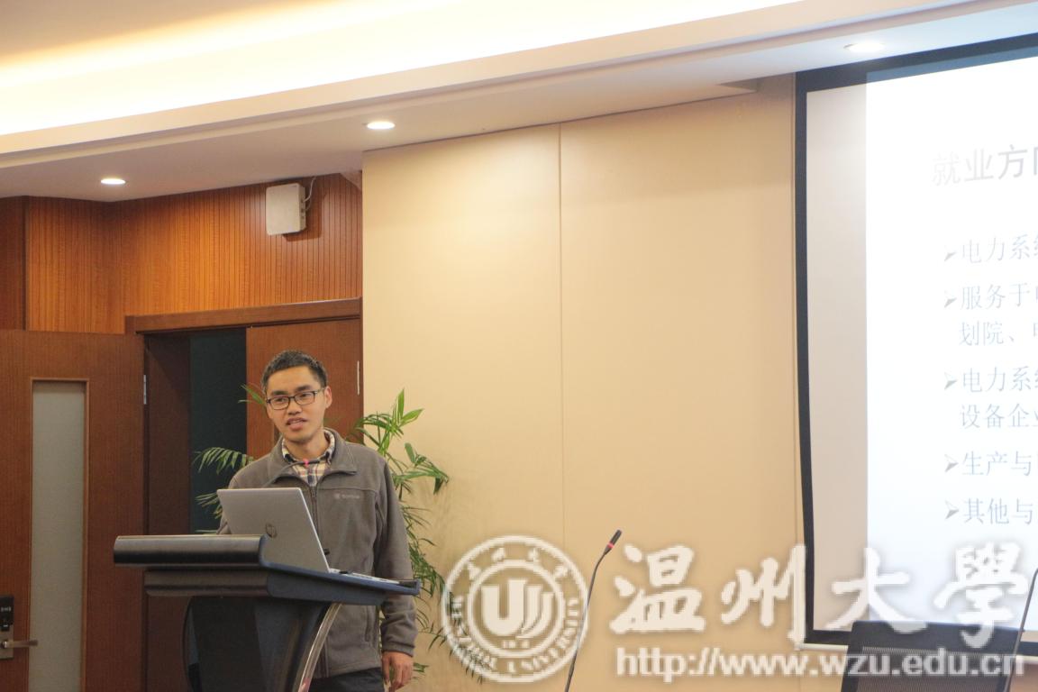 其次,原我院14电气班级、现浙江大学博士在读的杨光辉校友分享了他在温州大学电气专业的学习生活和考研经历,用自身经历为新生们讲解了大学期间努力学习和积极参加学术科研的重要性。