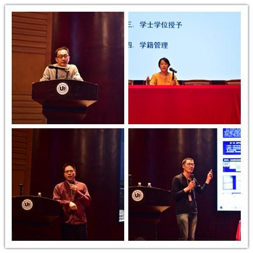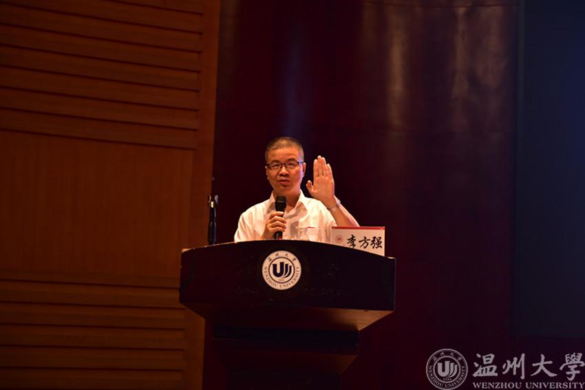典礼结束,进行“开学第一课”和学籍等日常管理培训。由学院党委书记、副院长李方强给新生上“开学第一课”。李书记欢迎大家来到温州,更欢迎大家到温州大学求学。他首先向大家介绍了温州的风土人情和学校发展的历史沿革,并告诉大家在大学学会“求助”和“助人”,鼓励各位新生执着奋进,创造属于自己的精彩人生。紧接着分管实验室的宋元平老师、教学科孙双老师、学工办的廖晓安老师、岳通通老师依次结合自己分块的工作,做了讲解和说明。