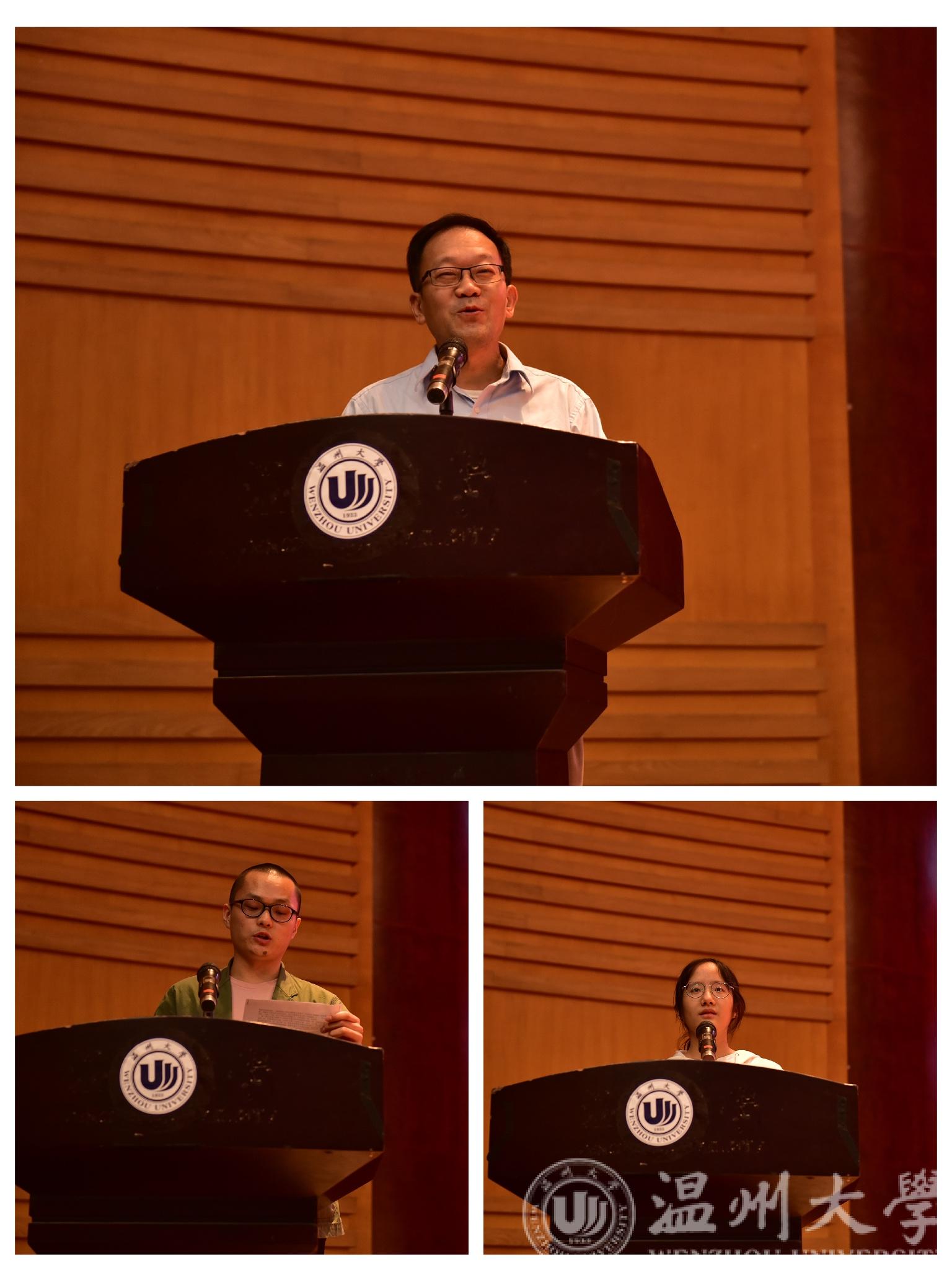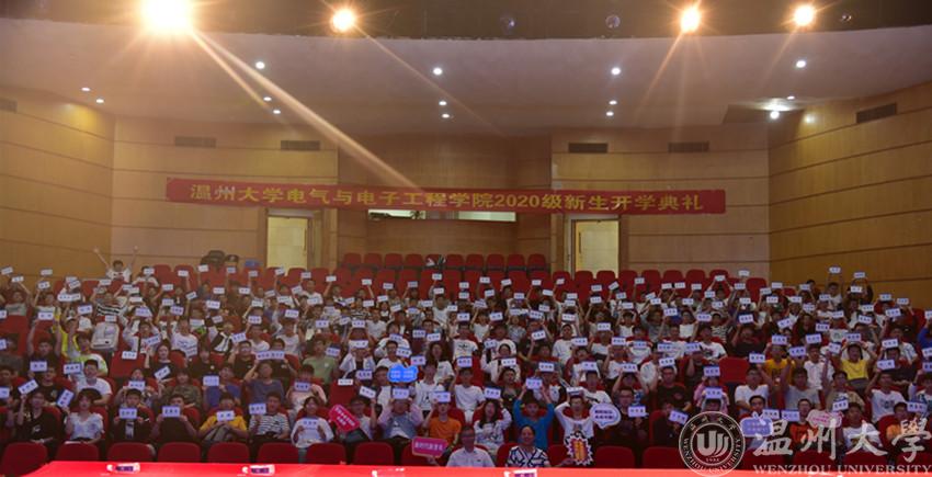 随后,由老生代表发言,这一次学院特别安排由18级研究生范毅同学作为老师代表上台发言,有了研究生学长的求学经历,更能感召和鼓舞各位新生。新生代表是20级电气1班的李欣燦,她结合自己高考经历,在新起点树立了新方向。典礼最后,李方强书记号召全体学生起立,佩戴温州大学校徽,把典礼推向高潮。