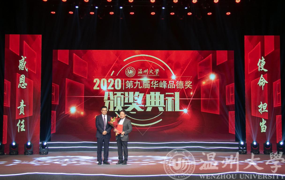 11月4日下午,温州大学第九届“华峰品德奖”颁奖典礼在育英大礼堂举行。我院教师吴桂初和学生张建龙获奖。