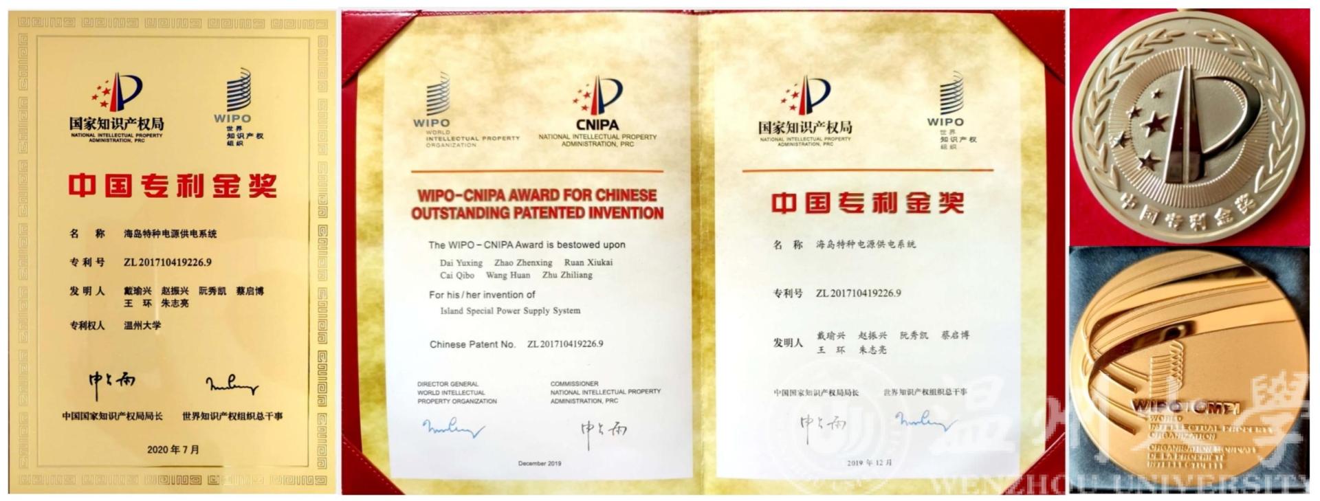 以温州大学为专利权人、戴瑜兴教授为第一发明人的发明专利“海岛特种电源供电系统”凭借其国际领先的技术水平、显著的经济与社会效益,获第二十一届中国专利金奖。该奖项是温州大学首次获得中国专利金奖,实现了我校中国专利金奖零的突破,这也是温州市首次获得该项殊荣。