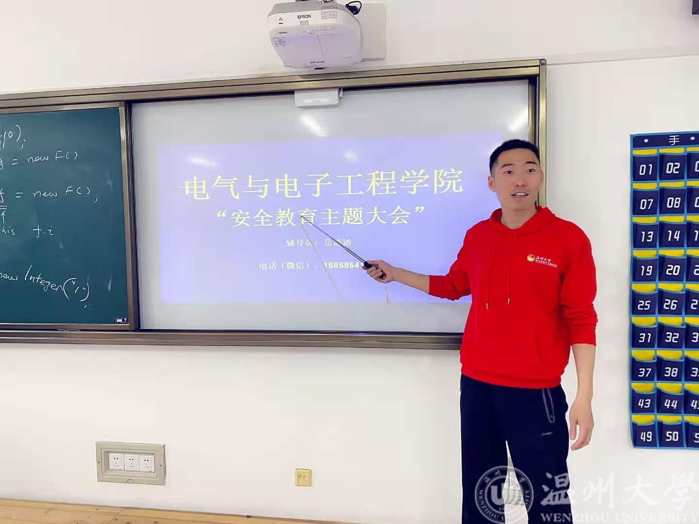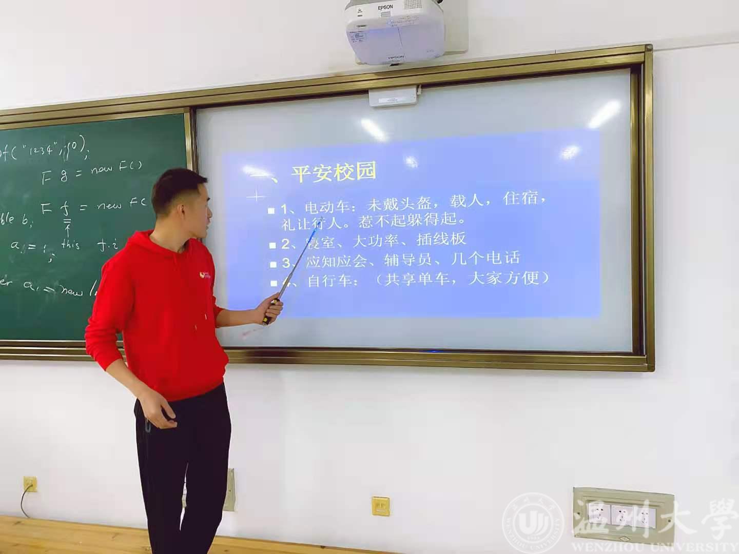 班会中,同时针对近期校园平安检查,岳老师也对广大学生日常出行、电动车载人以及寝室、实验室安全等现象也做了说明,告知学生安全出行,规范用电,禁止使用违禁电器、私拉电线。
