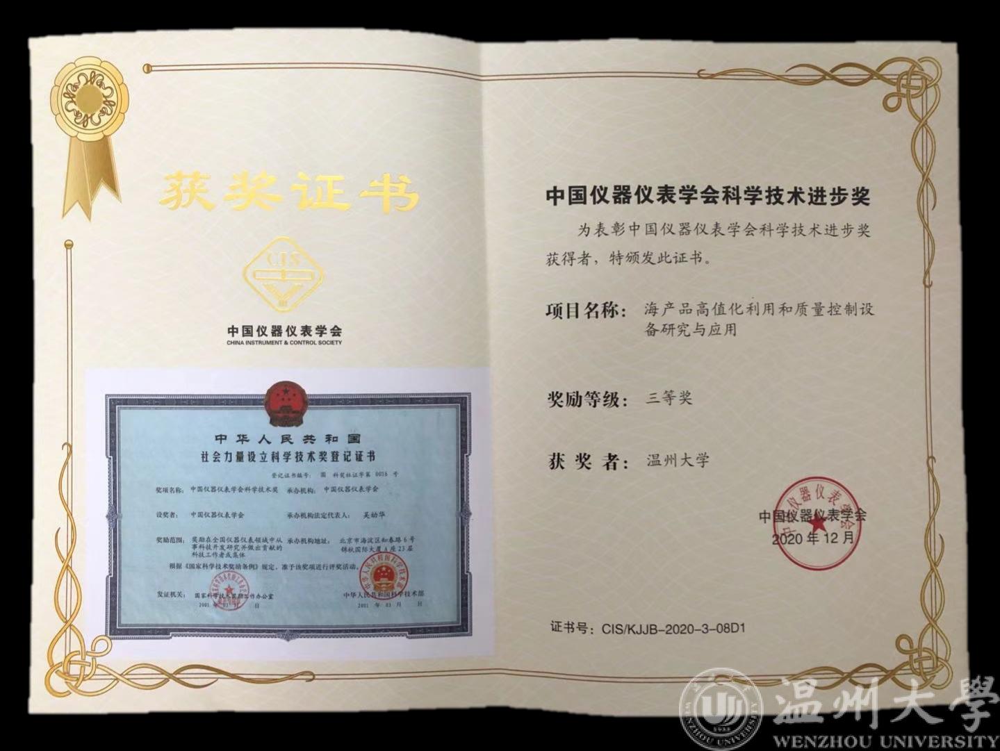 近日,我院陈孝敬教授团队的科研成果“海产品高值化利用和质量控制设备研究与应用”,经中国仪器仪表学会严格评审,获评2020年中国仪器仪表学会科技进步三等奖。该成果主要应用核酸扩增、分子免疫、光谱分析、模式识别等相关技术手段,开展了对泥蚶、海地瓜等海产品的品质、重金属污染检测等相关领域研究,开发出一套海产品体内重金属污染定量及去除为一体的低成本、快速测试的关键技术和设备。本技术和设备应用推广后表明,不仅可以显著提升检测效率和准确性,而且还能提高现有海产品安全性商品的经济附加值,产生了显著的社会和经济效益。
