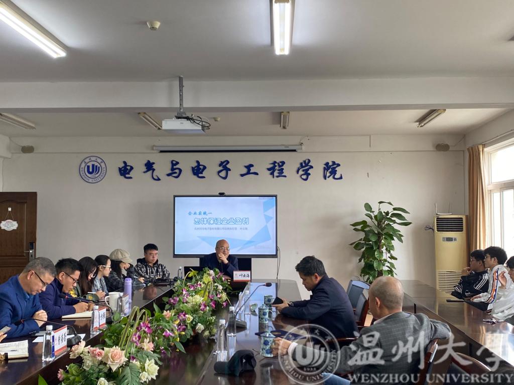 分享会结束后,学院领导与杭州科丰电子股份有限公司叶云海董事长及公司核心随行人员进行了关于安排实习、建立实践基地等事项的沟通。