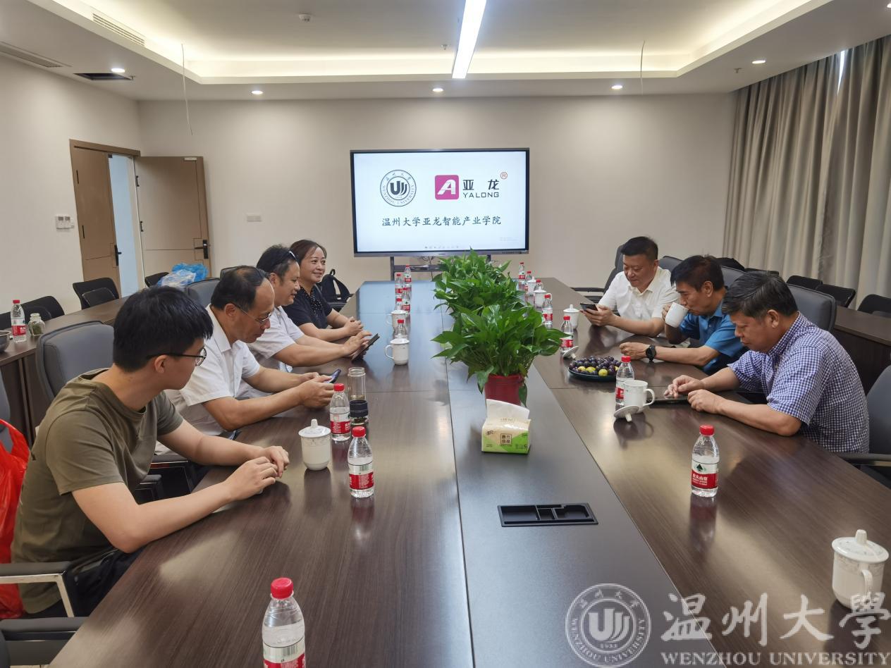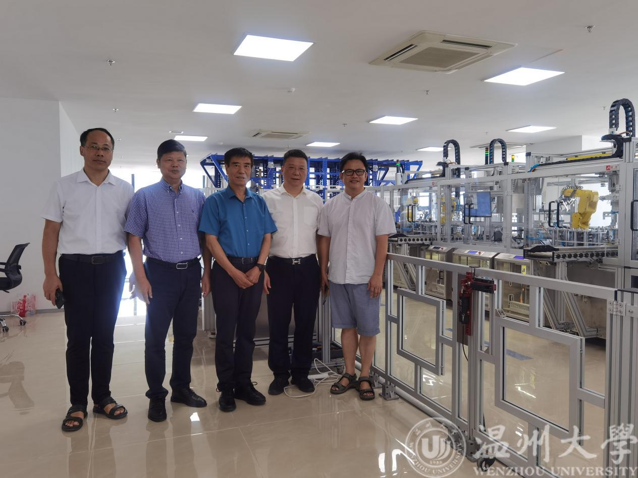2021年9月4日上午,教育部关心下一代工作委员会常务副主任、中国教育装备行业协会党组织书记、国家督学王富,浙江省督学陈建淼一行来到温州大学亚龙智能产业学院视察和指导工作。亚龙智能装备集团股份有限公司董事长陈继权,温州大学亚龙智能产业学院副理事长、院长朱翔鸥,理事林紫霞,产业学院副院长吴平陪同参观和座谈,产业学院学生双创团队代表列席座谈会。