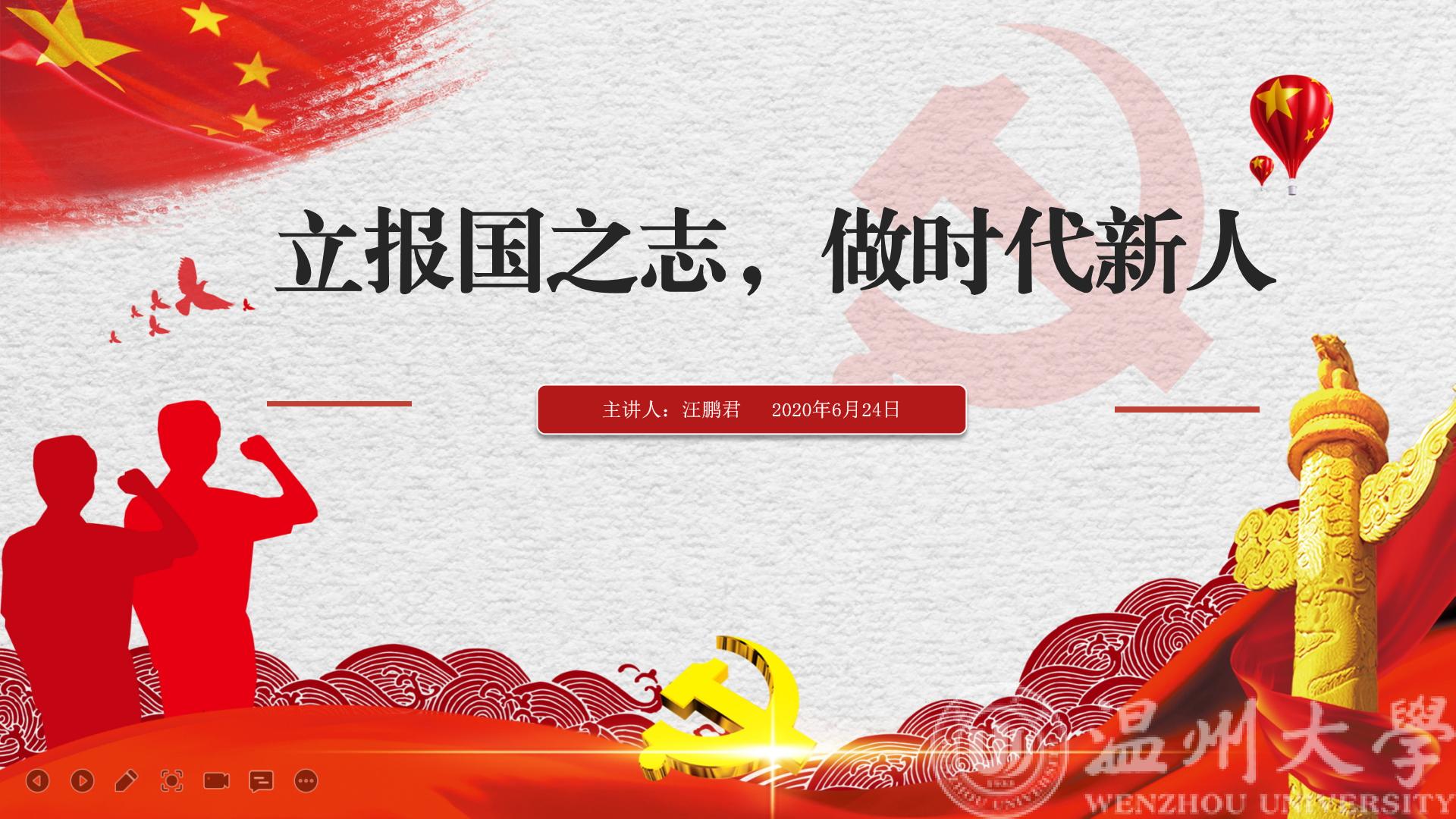 2020年6月24日,我院院长以“立报国之志,做时代新人”为主题,为全院学生党员展开了一堂生动的思政课。