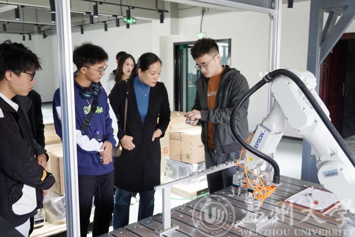 2021年11月20日,yl23455永利官网研究生会开展了“科技共创共享,研途超越自我”研究生实践活动。学院党委副书记曾蓓蕾、辅导员陈泓带领同学们前往温州大学乐清工业研究院观摩学习。