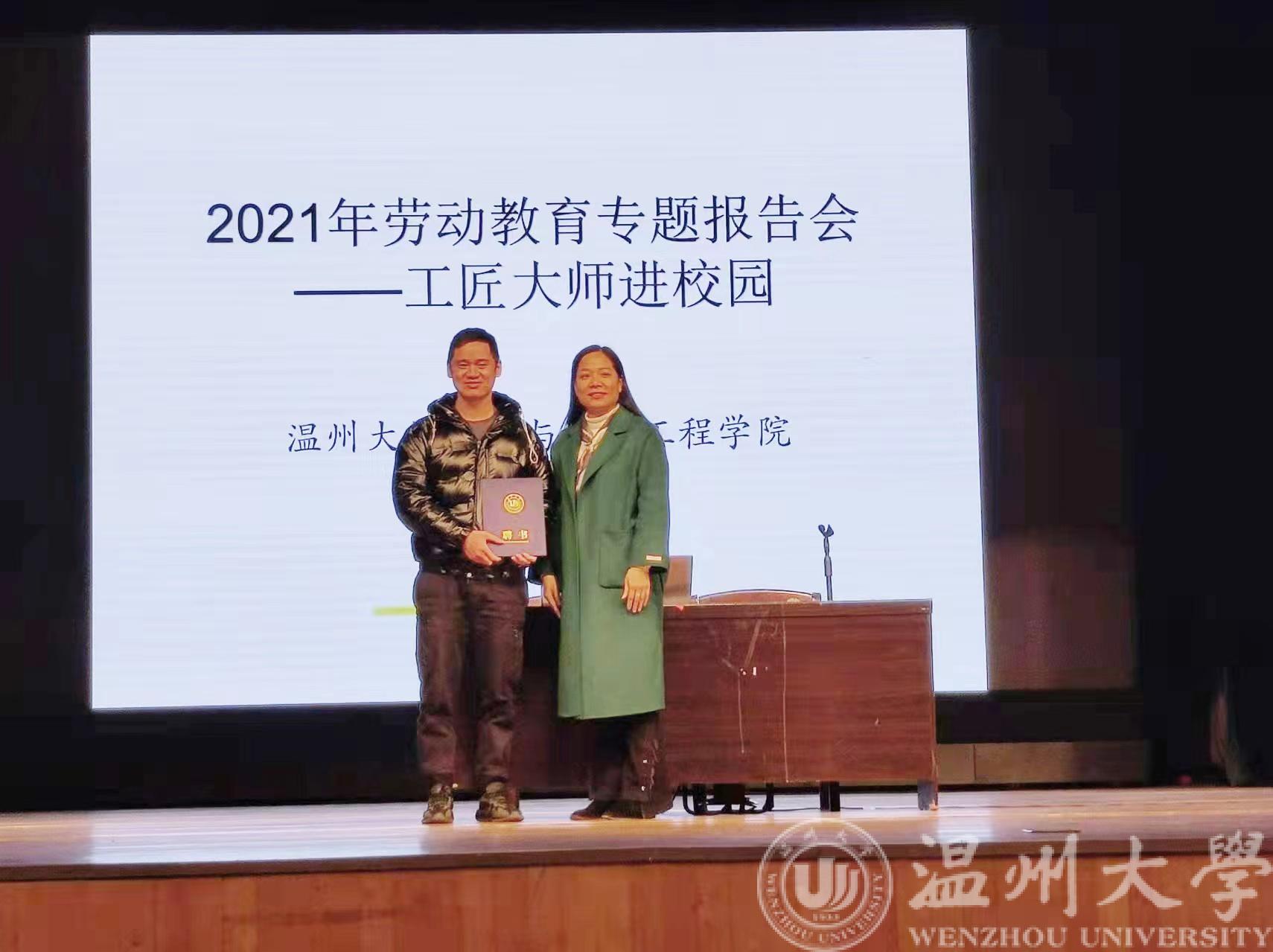 12月1日,yl23455永利官网劳动教育专题报告会之工匠大师进校园活动在育英大礼堂拉开帷幕。此次劳动主题报告会,学院特别邀请了浙江省的工匠大师、温州市劳模何升顺老师和兴机电器公司人事部门负责人邵新雷为21级新生开讲,学院党委副书记曾蓓蕾出席了此次活动,活动由学公办辅导员潘龙飞主持。