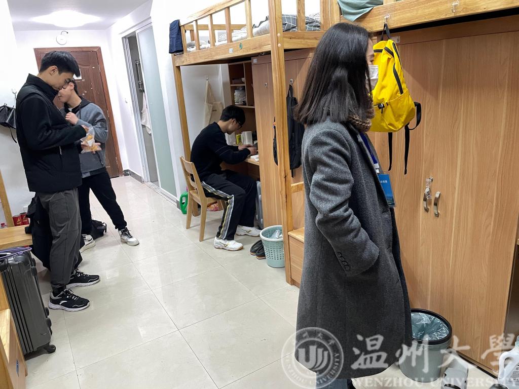 检查中发现,大部分学生宿舍整洁,学习气氛较浓厚,整体情况良好。但部分学生宿舍存在空气异味较重、物品摆放杂乱、逃课等现象。老师们当即对其进行劝说和引导,希望这些同学能够严格自律,维护整个宿舍良好的学习、生活氛围。