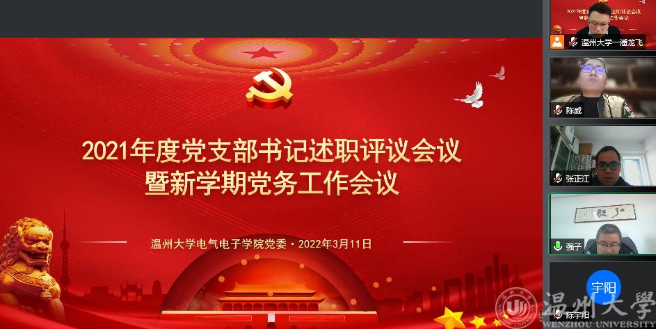 为深入贯彻新时代党的建设总要求,充分发挥党支部战斗堡垒作用,落实党建主体责任,2022年3月11日下午,我院组织召开2021年度党支部书记述职评议会议暨新学期党务工作会议,学院党委书记李方强,学院党委委员、各支部书记、工会代表和各科室负责人参加了此次会议。