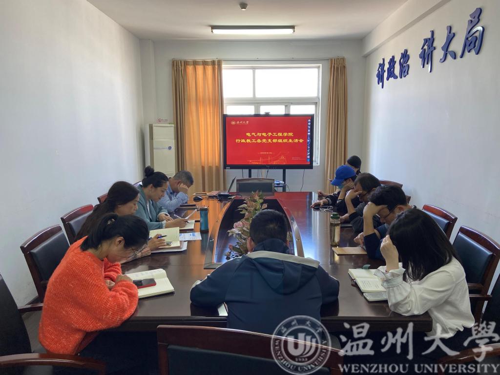 3月18日下午,我院行政教工党支部召开组织生活会,学院党委书记李方强,学院行政教工党支部全体党员参加会议,会议由学院党委副书记、行政教工党支部书记曾蓓蕾主持。