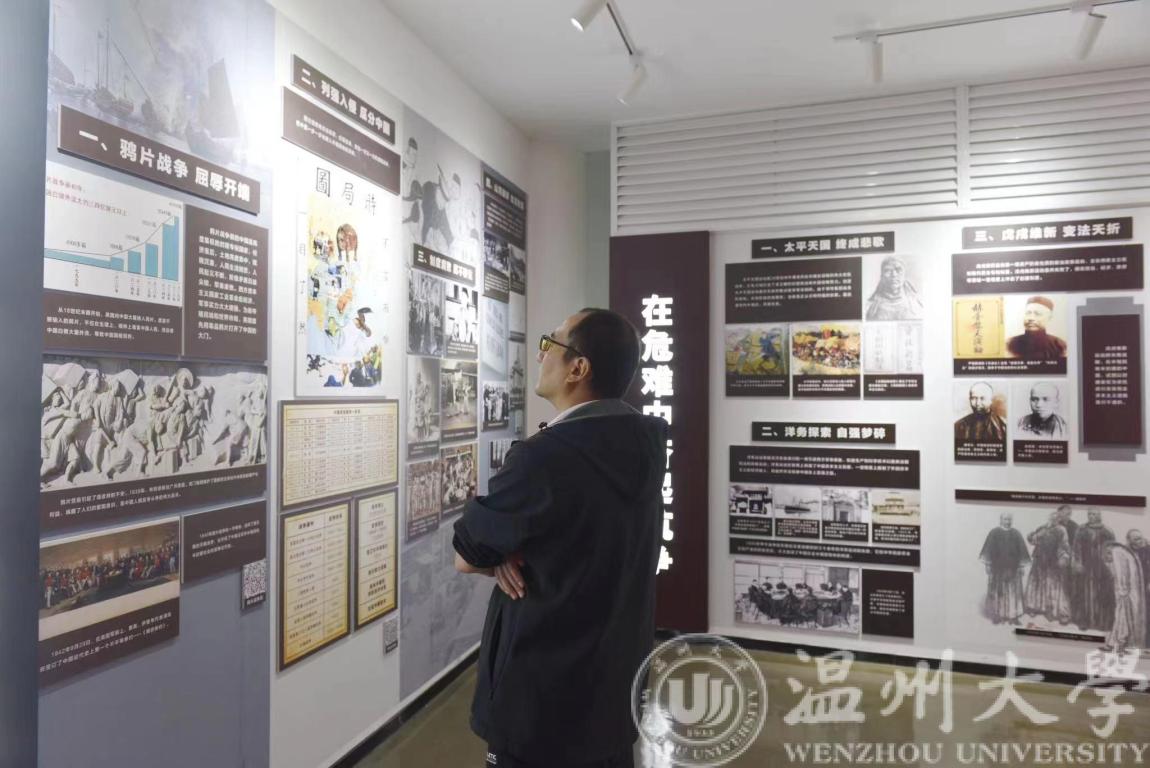 紧接着,跟随讲解员的脚步,进入到“中国共产党的初心和使命“长廊。该单元内涵丰富,鲜明展示了“初心使命的提出和践行、浙江干在实处走在前列勇立潮头、努力成为新时代全面展示中国特色社会主义制度优越性的重要窗口,把温州这不创新史继续写下去,特别要办好温州大学等高等院校”等板块,展示“三地一窗口”的政治优势,教育引导青年当好“红色根脉”传承人、守护者。