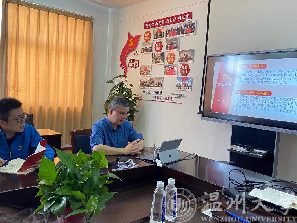 会议伊始,李书记就《条例》的出台背景、过程和意义,做了详细的说明。李书记指出,《条例》的制定和实施,对于加强党的组织体系建设,全面提升党支部组织力、强化党支部政治功能,充分发挥党支部战斗堡垒作用,巩固党长期执政的组织基础,具有十分重要的意义。紧接着,李书记就《条例》的主要内容分块进行了详细的解读,包括明确的党支部功能定位、党支部的设置、党支部的基本任务和不同领域党支部的重点任务、党支部的工作机制、党支部组织生活、委员会建设和党支部工作的领导指导责任等方面。李书记对每一章条例作了解读和说明,并附以实例进行说明,阐释了高校党建工作内容以及党支部工作机制和任务。其中,组织生活是党支部对党员进行教育管理的基本方式,李书记着重展开介绍了党支部组织生活的基本形式,包括“三会一课”、主题党日、组织生活会、民主评议党员、谈心谈话等。从对组织生活的概念厘清上,提出对党支部工作的要求,真正做到理论学习和政治教育。