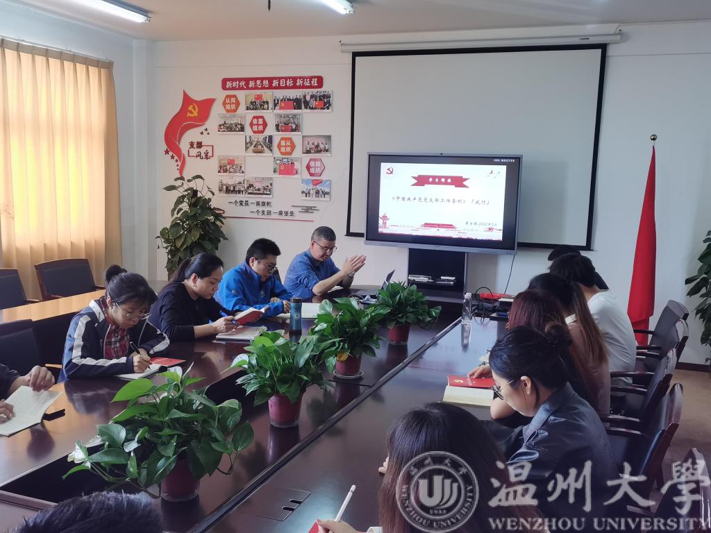 为进一步加强我院基层党支部建设,切实提升支委工作能力和水平,推动学院党支部工作规范化、高效化,2022年5月4日下午14:00,我院举行党员骨干培训会议暨《中国共产党支部工作条例(试行)》(以下简称《条例》)专题解读会议。此次会议由学院党委书记李方强主讲,学院党委副书记曾蓓蕾,院党建负责老师、师生党支部书记、支委、党员服务中心负责人和各部门代表参与了此次会议。