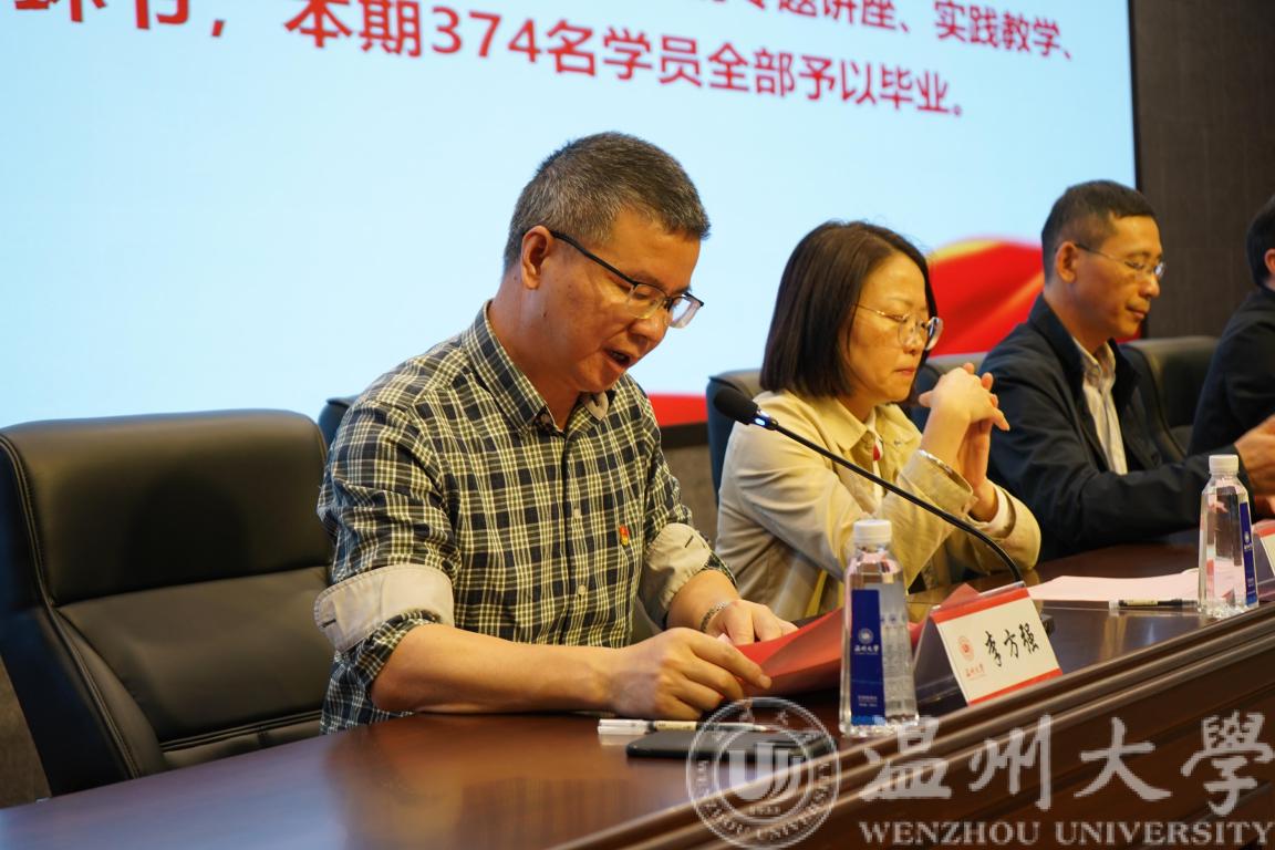 5月18日13:30,温州大学2022年上半年南校区发展对象培训班(联合)结业典礼在南校区岩松堂步青厅圆满举行。温州大学教育学院党委书记、分党校校长何毅,数理学院党委书记、分党校校长陈兴桂,化学与材料工程学院、分党校校长刘吟,yl23455永利官网党委书记、分党校校长李方强,计算机与人工智能学院党委书记、分党校校长全力,建筑工程学院党委副书记王中对,yl23455永利官网党委副书记曾蓓蕾出席了此次结业典礼,参加典礼的还有部分学院党建负责老师、本期党员发展对象班全体学员。典礼由yl23455永利官网党委副书记曾蓓蕾主持。