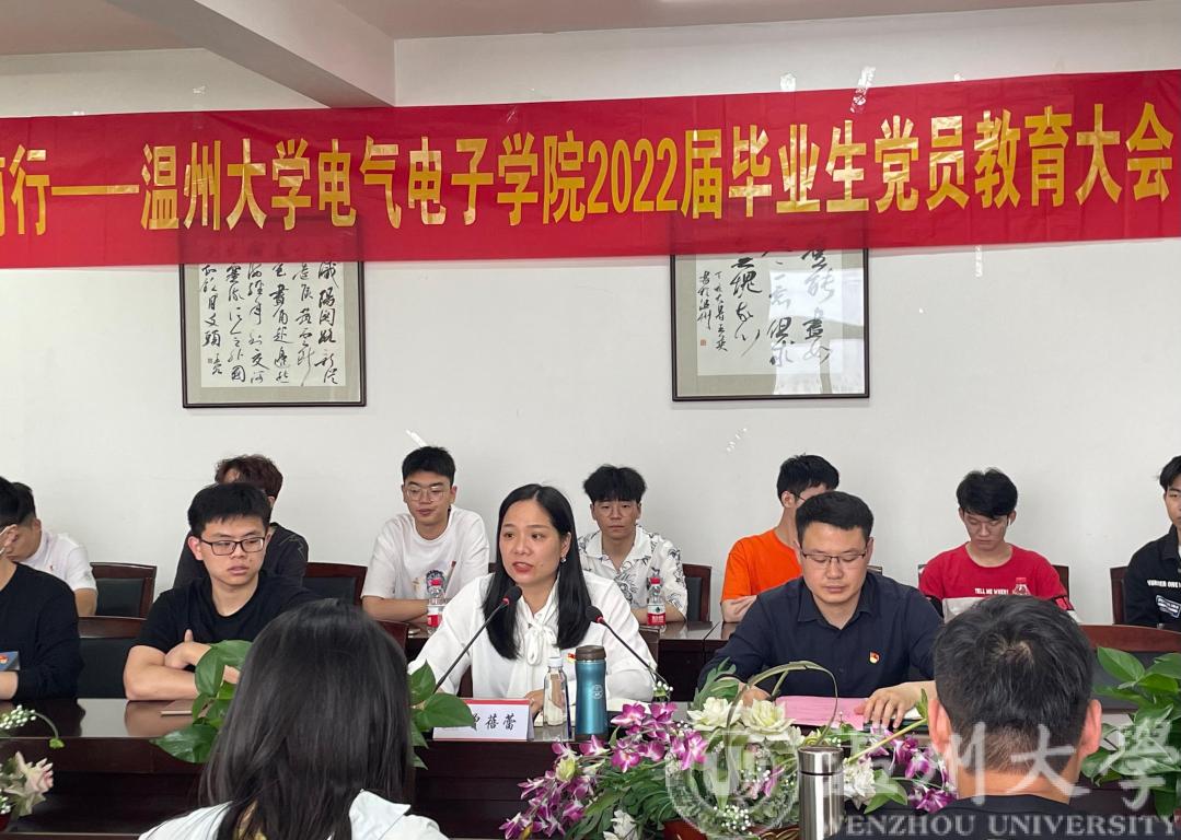 6月1日下午14:00,我院在1A502会议室举行2022届毕业生党员教育大会,学院党委副书记曾蓓蕾出席了此次大会。会议采用线上线下的形式举行,全体2022届毕业生党员参与了此次大会。会议由辅导员潘龙飞老师主持。