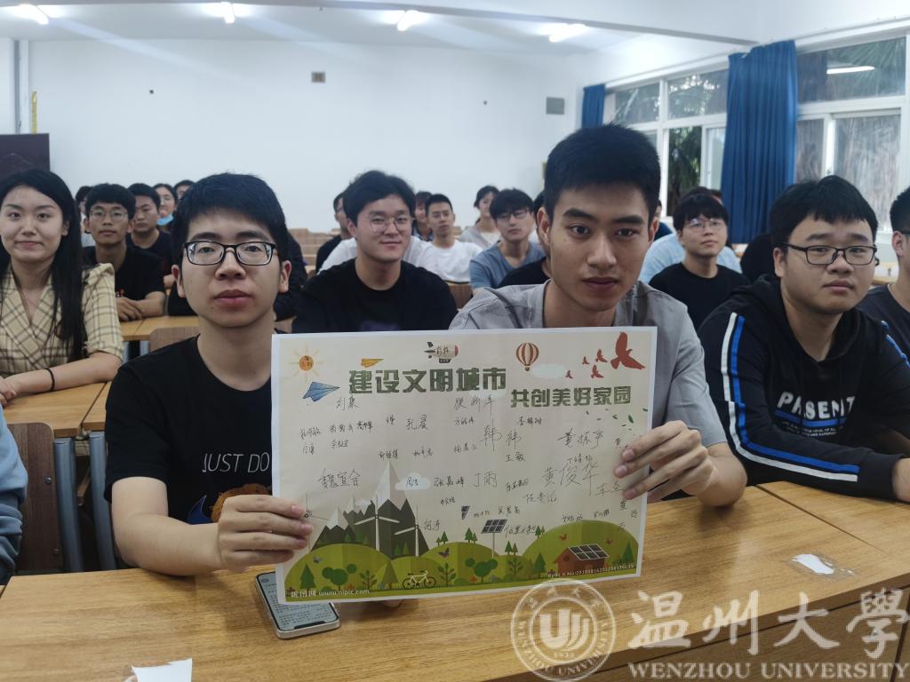 为提升我院学子的文明素养和文明程度,全面落实“做文明有礼温大人”主题教育活动,深化文明城市建设,我院学子近期开展了“创建文明城市,做文明大学生”的主题班会和团日活动,各个年级的同学以饱满的热情参加了本次活动。