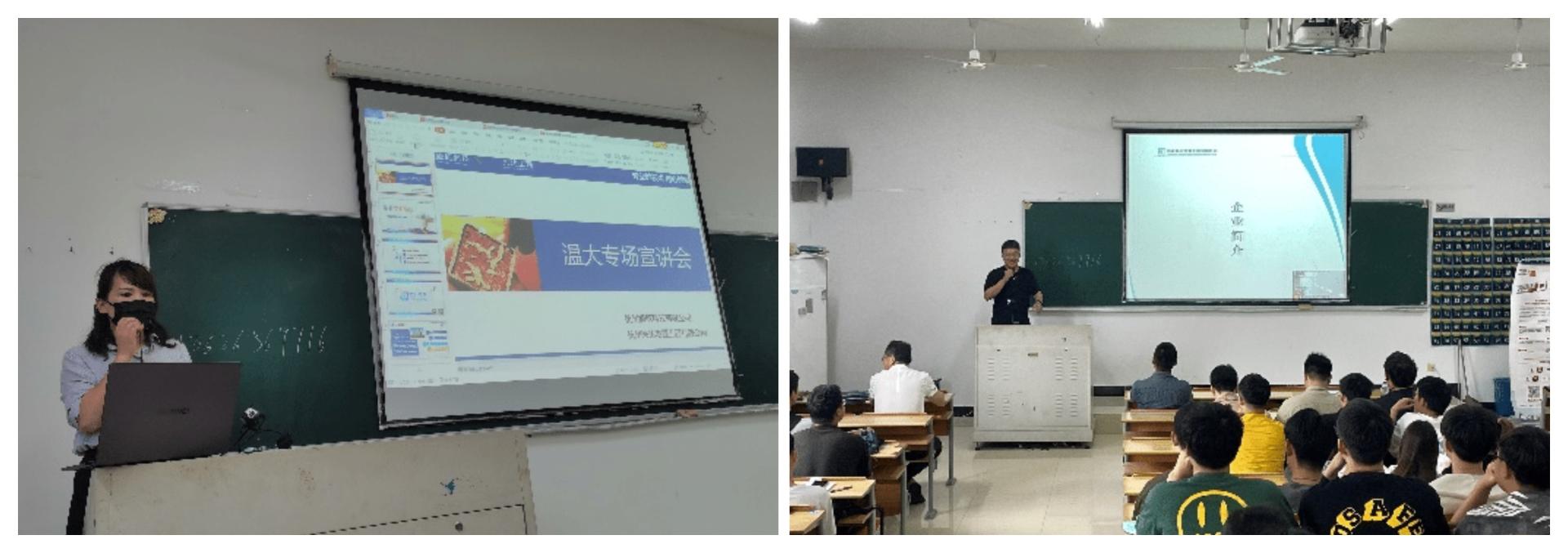 随后,鸿晟电力设计咨询有限公司、浙江九宏电力工程有限公司、德力西电气、杭州兴达电器工程有限公司、杭州极能科技有限公司等企业做了现场宣讲,向同学们介绍企业的招聘需求、岗位要求和待遇等信息。同学们与感兴趣的企业进行了现场交流。