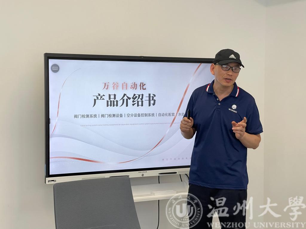 为推动我院学子更好地择业就业,加强学院与校友之间的联系,6月28日下午14:30,我院党委书记李方强、党委副书记曾蓓蕾、电气系支部书记张正江、乐清工业研究院副院长吴自然、学工办辅导员屠昌浩赴永嘉开展访企拓岗活动。位于永嘉的浙江万谷自动化设备有限公司是我院的校友企业,总经理汤豪是我院1996级校友。该公司的经营范围包括工业自动化设备、计算机及软硬件、仪器仪表(除计量器具)、阀门试验设备、气动元件、高低压电器及成套设备等。