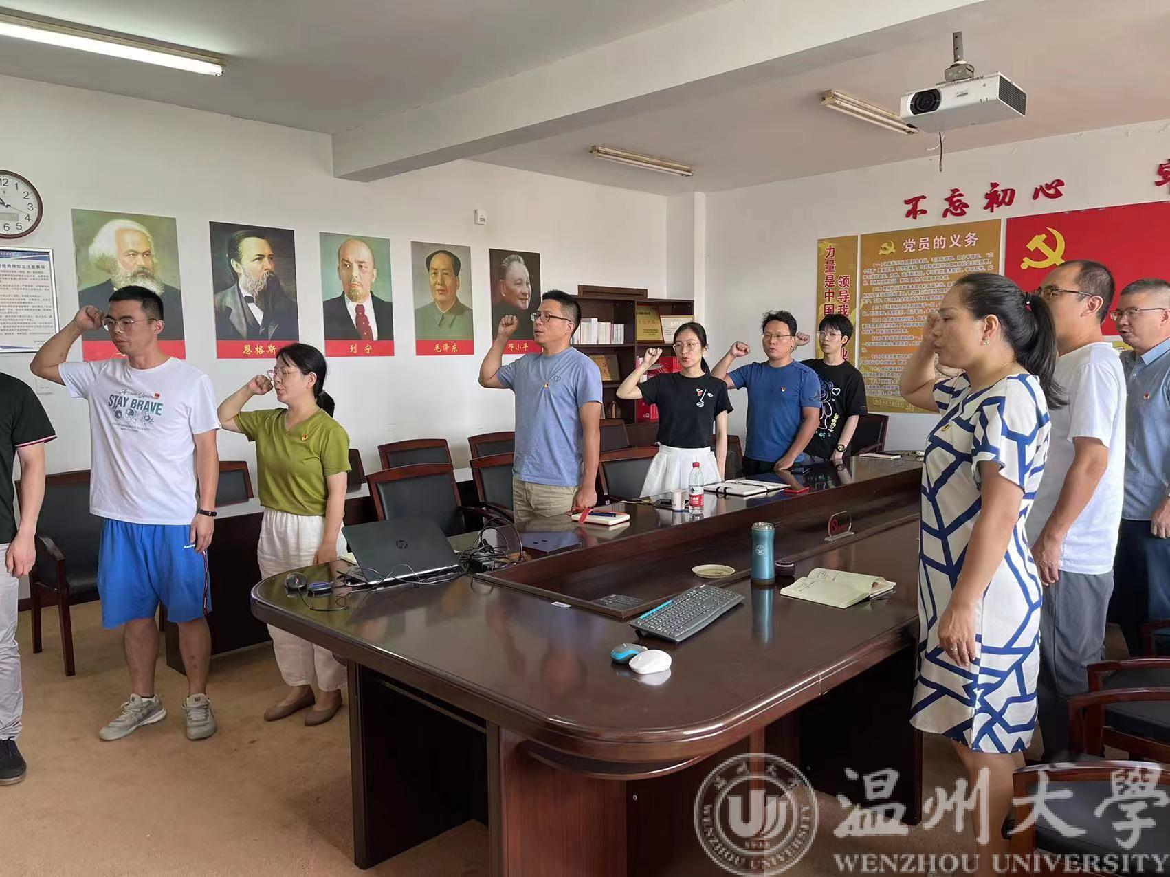6月29日上午10:00,yl23455永利官网行政教工党支部全体党员在党建活动办公室1A512举行“学省十五次代表大会精神,迎建党101周年生日”暨新党员入党宣誓、重温入党誓词主题党日活动,学院党委书记李方强参加活动。学院党委副书记、行政教工党支部书记曾蓓蕾主持。