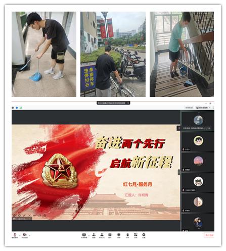7月10日下午,本科生第一党支部组织召开线上支部大会,会前支部党员学习省第十五次党代会报告精神,并递交学习体会。会上,支部党员许柯青、徐虞昊、方正宇作为党员代表,从学生的党员的角度分析的两个先行的具体意义以及两个先行对于大学生党员的要求和意义。会议结束后,党员同志们都行动起来,在校党员打扫了学院教室,摆放整理了单车,维护了校园环境;不在校的党员,深入社区,打扫小区楼道,拾取小区内的垃圾等志愿服务活动。
