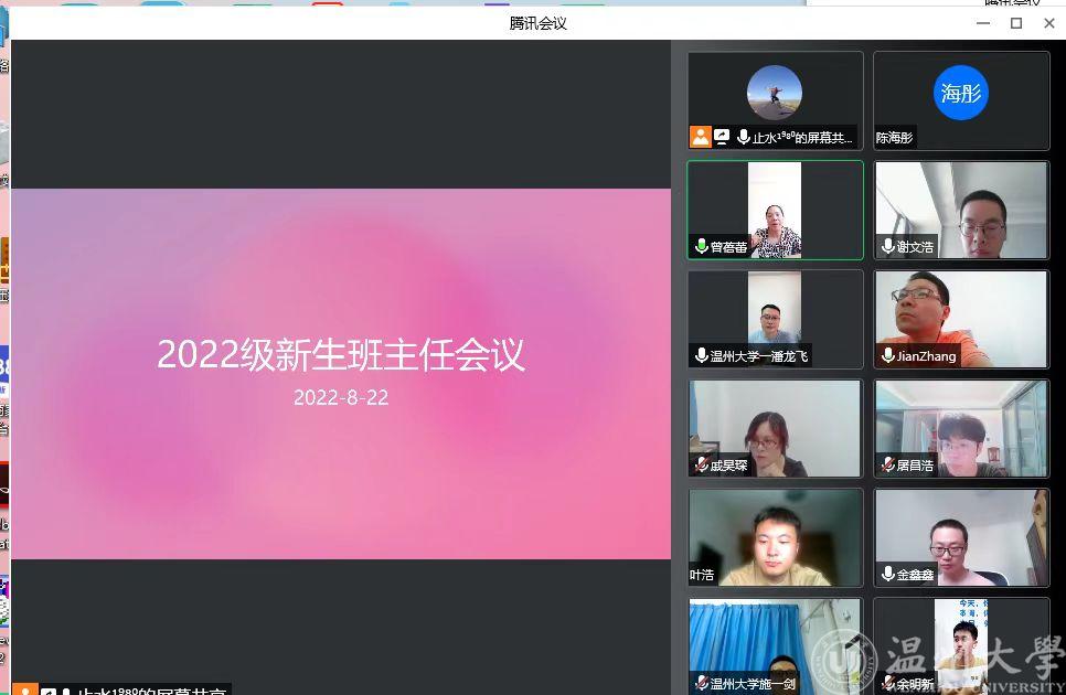 为进一步完善新生班级的管理制度,做好迎接新生准备工作,8月22日上午10:00,yl23455永利官网组织召开2022级新生班主任工作会议,院党委副书记曾蓓蕾,学工办主任、团委书记廖晓安,全体2022级本科生、研究生班主任和学工办辅导员参加了此次会议。会议由学工办主任、团委书记廖晓安主持。