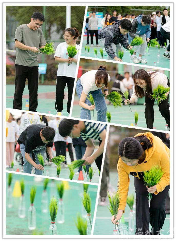 篮球场变身耕田,师生们在“自留地”上又快又准地将“秧苗”插入“田地”。大家在运动项目中体验农耕文化,感受劳动艰辛。