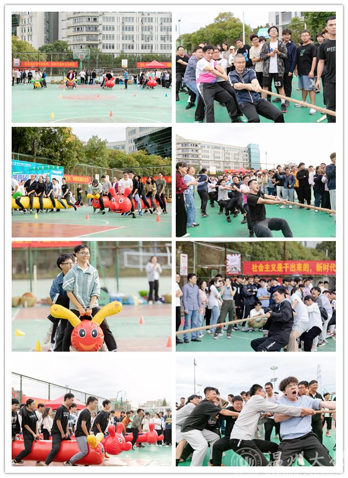 劳动项目后,还有激烈的毛毛虫竞赛和师生大拔河。老师们骑着憨态可掬的毛毛虫,喊着口号齐心协力地向前方跑去,为他们加油助威的呐喊一声高过一声,此刻的他们,意气风发、神采飞扬。随着哨声响起,拔河比赛展开了激烈的对决,胜负难分的时刻,大家毫不退却,斗志昂扬,一旁观赛的老师们纷纷为他们加油呐喊。一时间赛场上口号声、呐喊声、鼓掌声、喝彩声,声声不绝于耳,灿烂的笑容绽放在每一个人脸上。