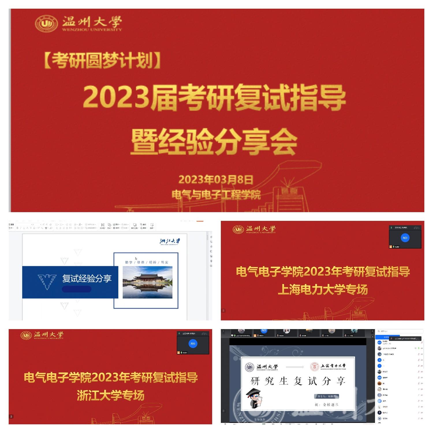 如今,已成功上岸的优秀学子们也接住了来自学校的考研“接力棒”,在复试流程、考核形式、复试要点、导师选择等方面都给予耐心细致的指导,将对母校的爱传递给学弟学妹们。近期,学院已邀请来自温州大学、浙江大学、上海电力大学以及杭州电子科技大学的数十位优秀校友开展复试指导和经验分享会。受益同学近百人次。