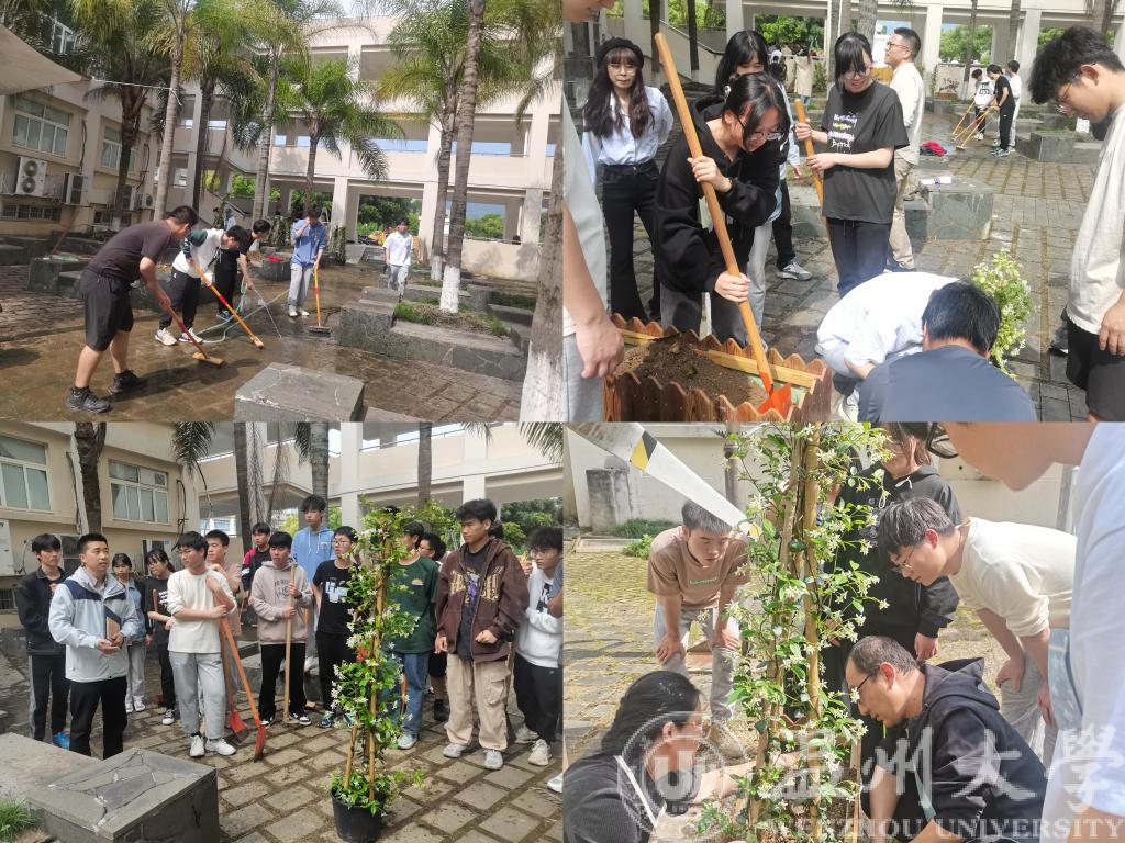 槐夏四月,在温大yl23455永利官网AB楼幢中庭,这里正在举行一次别开生面的劳动。近50名师生齐聚这里,他们准备完成一次特别的任务,动手“改造”他们的后花园。