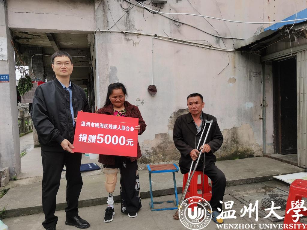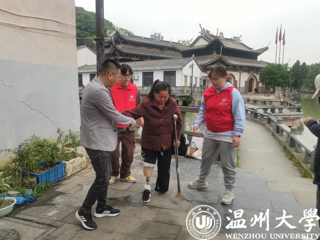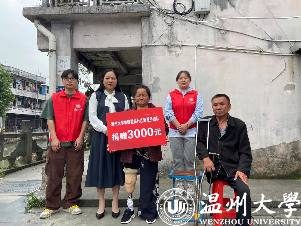 2020年,温州大学单脚鞋银行志愿服务团队在一次活动中,意外结识了曾叔夫妇,了解到他们不幸的遭遇,决心要帮一帮他们。该志愿服务团队多次上门看望曾叔夫妇,为他们送去各季单脚鞋,米、面、油等生活用品。去年的全国第32个助残日当天,团队成员还来到曾叔夫妇的家中,在看望慰问他们的同时,还给曾叔夫妇家中的墙壁贴上了贴纸,打扫整理房间。多次交流中,团队成员了解到曾叔夫妇有想安装假肢的愿望,但因收入微薄,愿望一直难以实现。