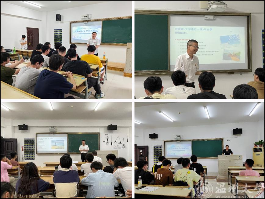 近日,温州大学电气与电子学院领导分头到各个毕业班,同班主任一道为毕业生上了大学生涯中的最后一堂课,领导们一改之前专业课程的授课方式,紧贴生活实际,围绕“立足当下,肩负青年时代使命”“继续成长,树立终生学习意识”“心怀感恩,培养优秀人格品质”“展望未来,求学问是敢为人先”四个主题,课堂上认真听课的毕业生们频频点头,不时爆发热烈掌声。