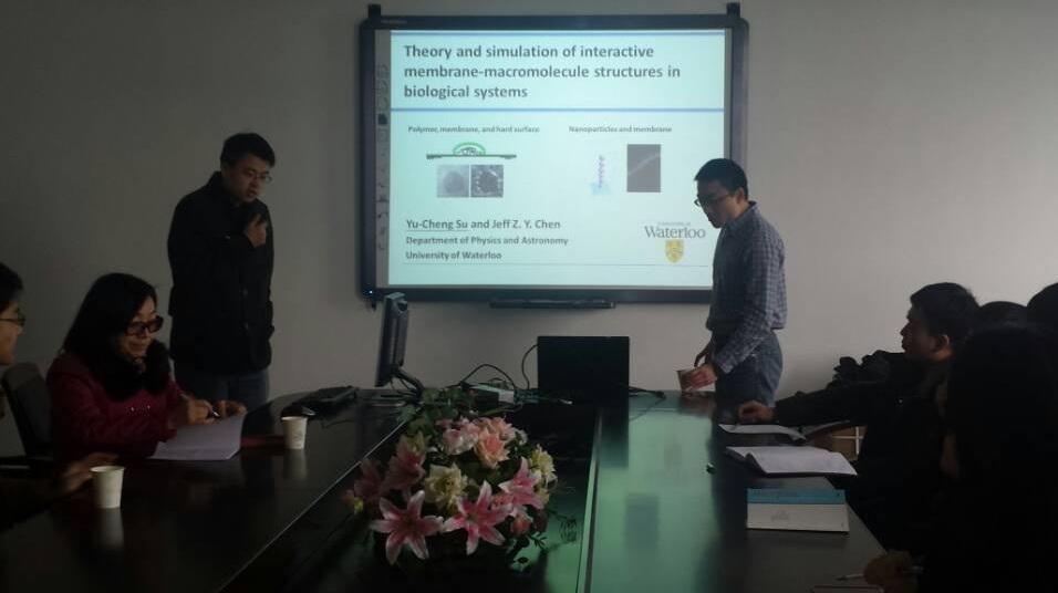1月2号上午,美国滑铁卢大学的苏育正博士在3B410学术会议室为我院师生作题为“Theory and simulation of interactive membrane-macromolecule structures in biological systems ”的学术报告。