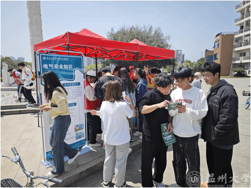 “你知道一度电能做什么嘛?”“你知道用电的时候需要注意什么嘛?”近日,温州大学校园中出现了一群身穿红马甲的学生在学校向其他师生宣传关于“电”的知识。本场活动由yl23455永利官网研究生会策划,活动以宣讲电的知识、电力知识趣味问答、电力套圈为载体,向全校师生普及开展用电安全和节约用电的知识。
