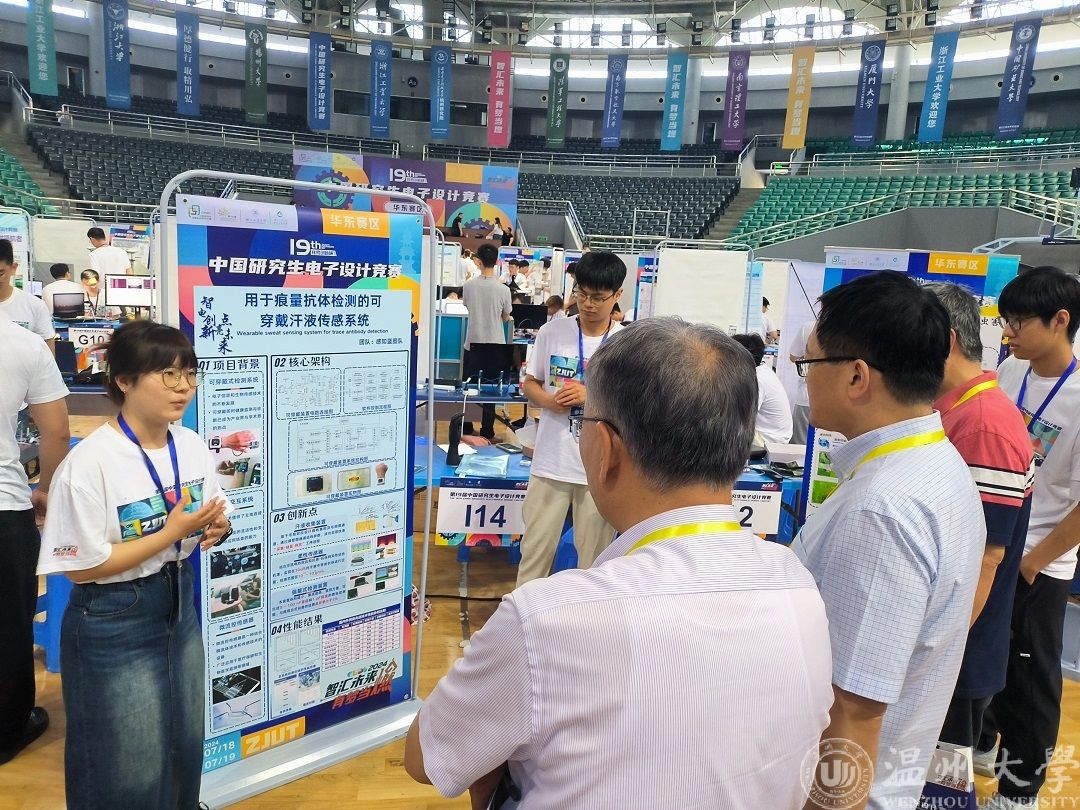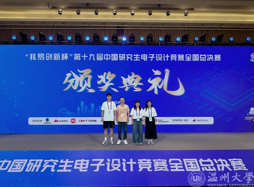 8月8日—10日,“兆易创新杯”第十九届中国研究生电子设计竞赛(简称“研电赛”)全国总决赛在东南大学无锡国际校区圆满落幕,yl23455永利官网研究生团队再创佳绩。温州大学张鉴教授和戚昊琛副教授指导的研究生团队(感知蓝图队)携“用于痕量抗体检测的可穿戴汗液传感系统”项目荣获全国总决赛一等奖。张鉴教授同时荣获全国总决赛“优秀指导教师”荣誉称号。温州大学再次获全国总决赛“优秀组织奖”。